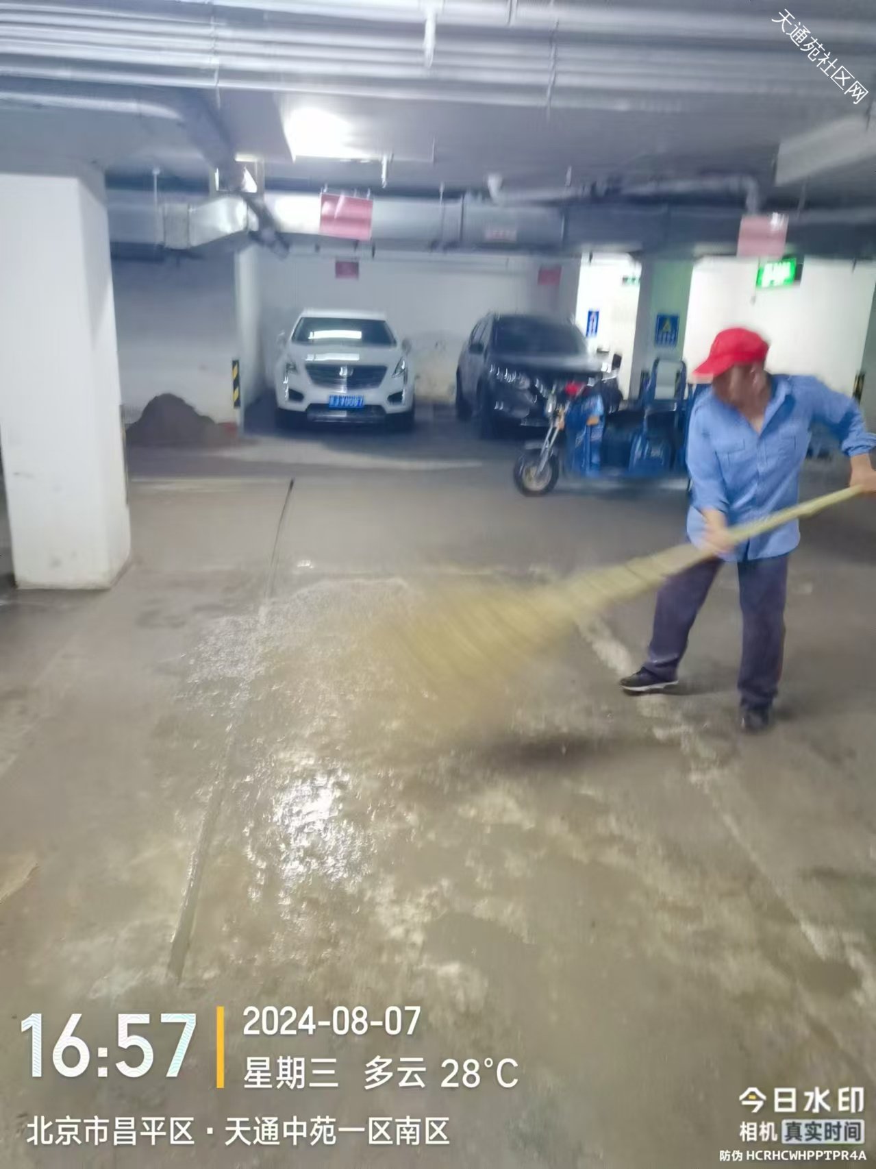 漏水能有好几年了,前两年刨了几条沟治标不治本,天天上下车踩一脚泥水,呼吁物业尽快修理,起码把车位里的水处理一下,天通中苑56号地库054车位