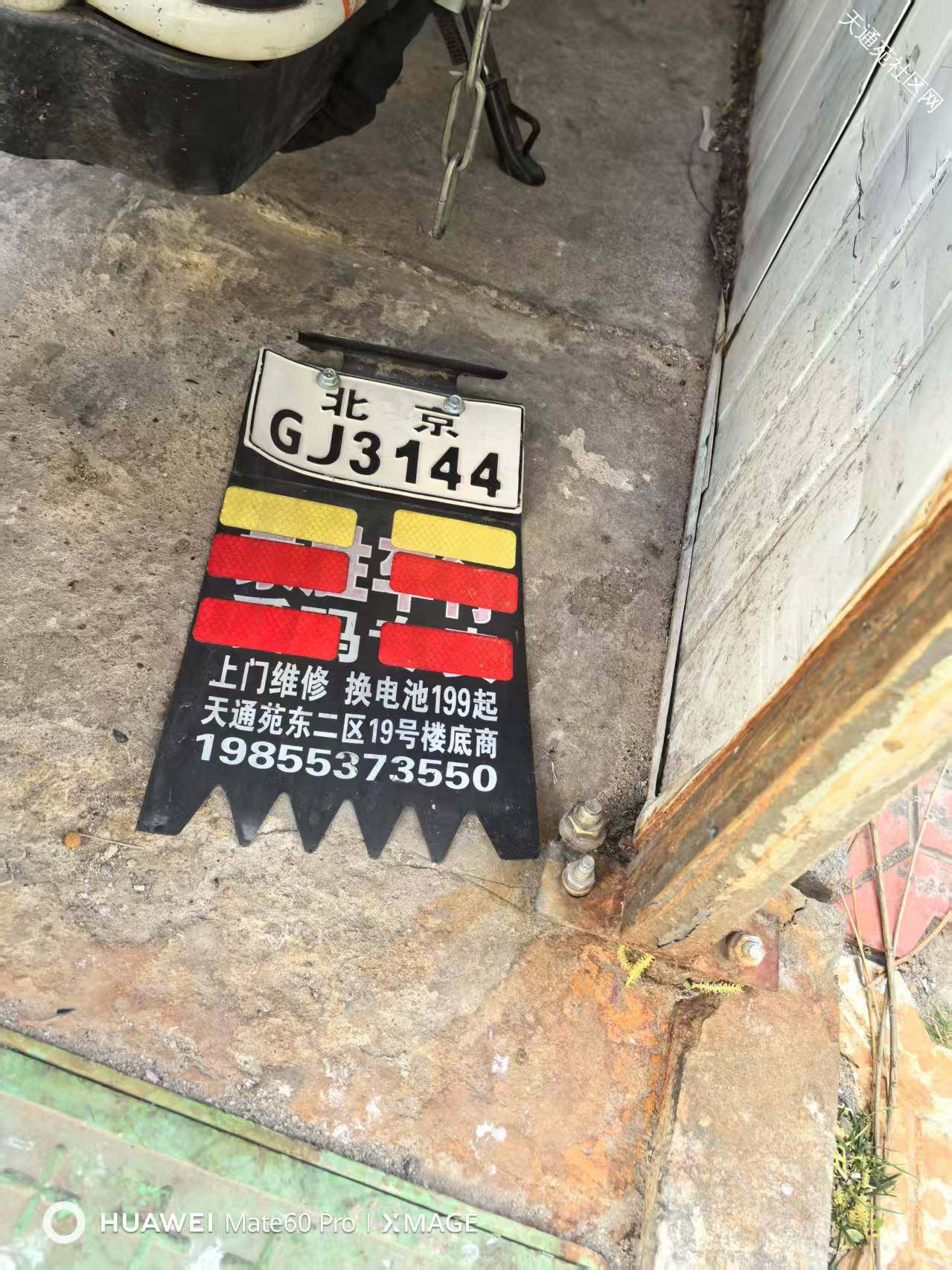 哪位邻居的车牌子?应该是大风把电动车吹倒了,后挡泥板碎了