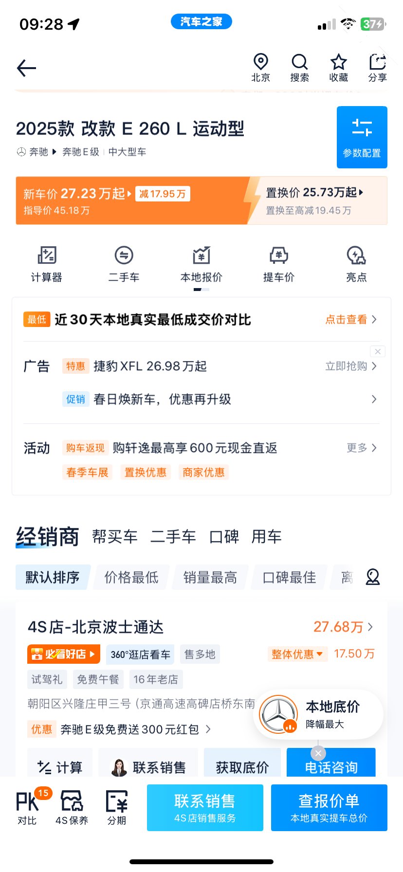 本来打算ES300H的 上周问了下全款要35,今天看之家 看到奔驰E 裸车27?就算是贷款的价格 怎么算也到不了35啊!真的假的啊