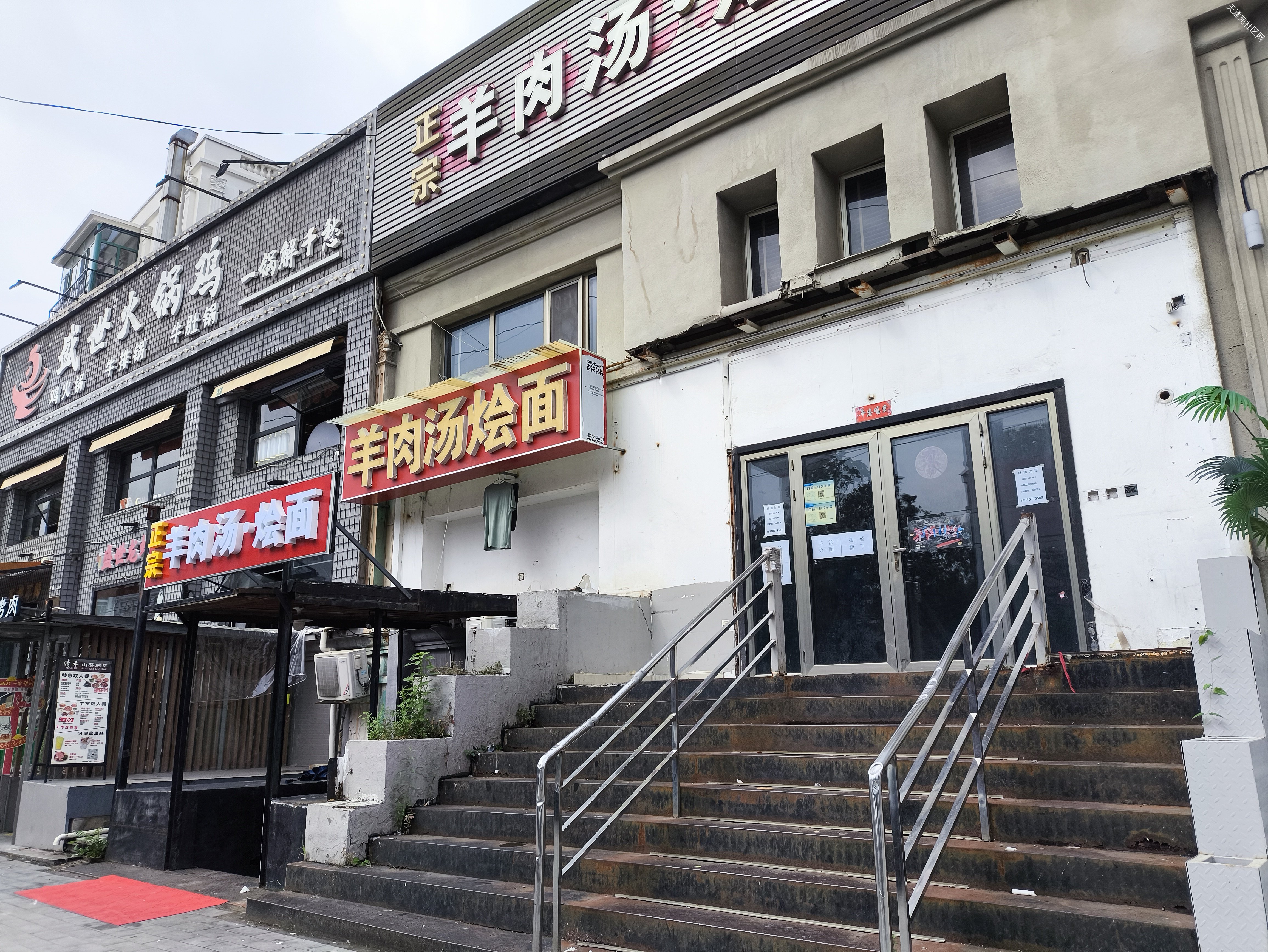 老五区商业街火锅鸡倒闭招租中,羊汤烩面搬到半地下,原四区烤场位置