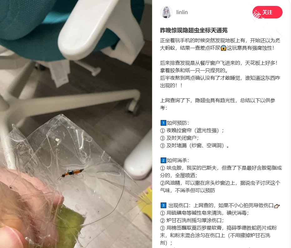 转发小红书,多位网友发现隐翅虫,这个要命的,很危险,大家注意
