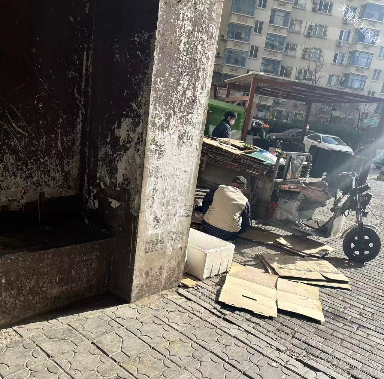 现恳天通苑西三区物业,天北街道采取有效措施,清理现有堆积废品,且后续严禁拾荒者在垃圾桶旁占据堆积,以维护小区干净、安全、有序的居住环境。