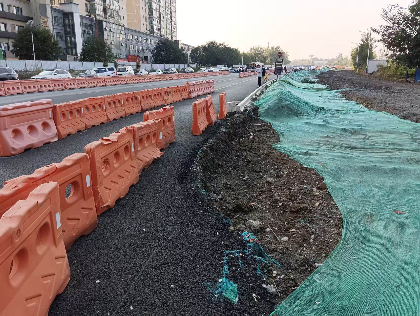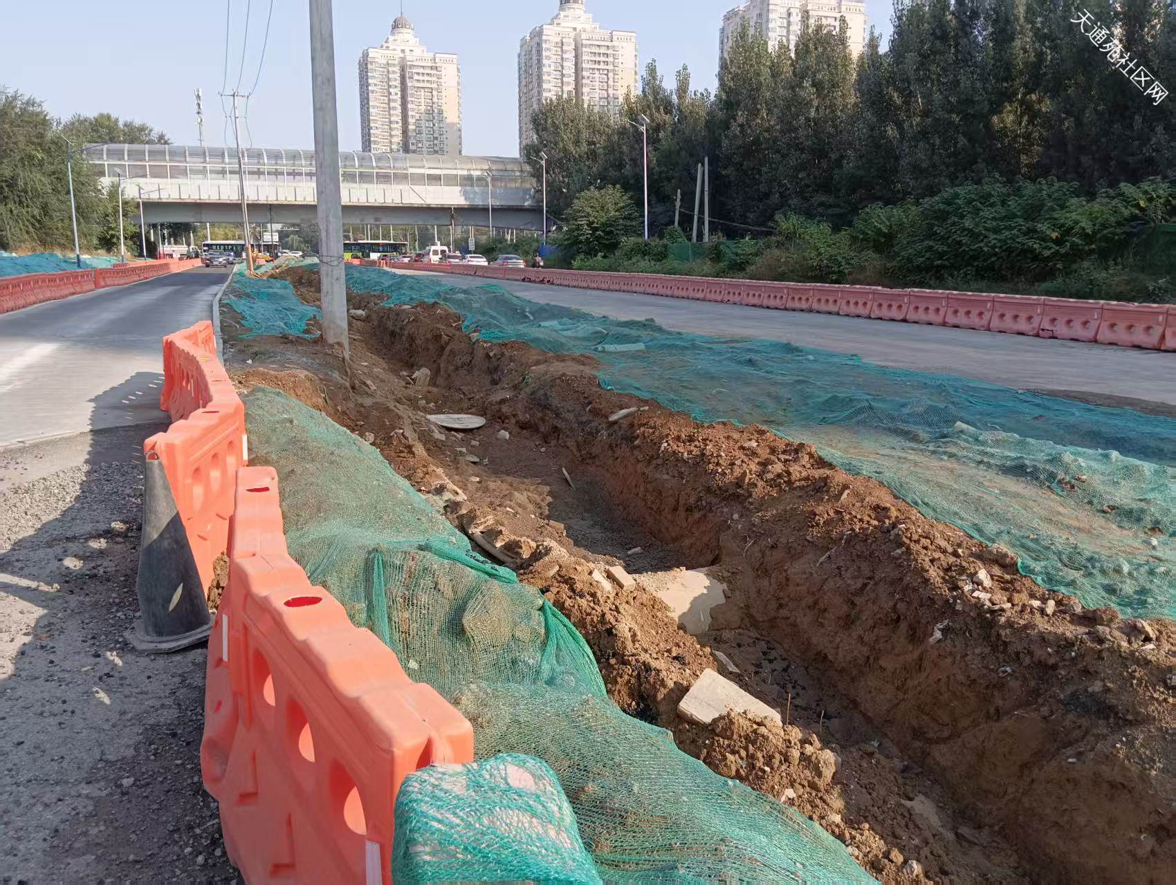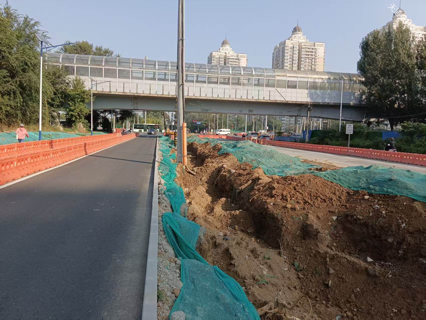 西三区北门至立汤路这段中间挖了条沟,两侧能通行,现场有工人值守,未见有工人施工,看这进度,年底弄完那就不错