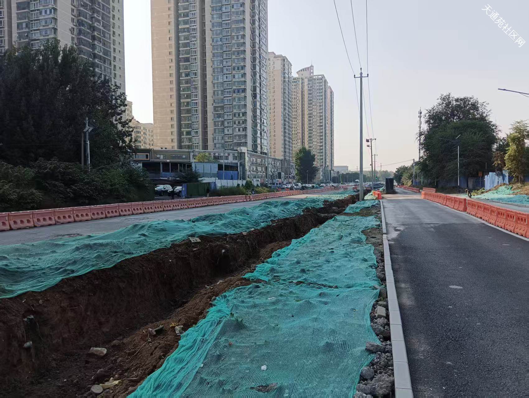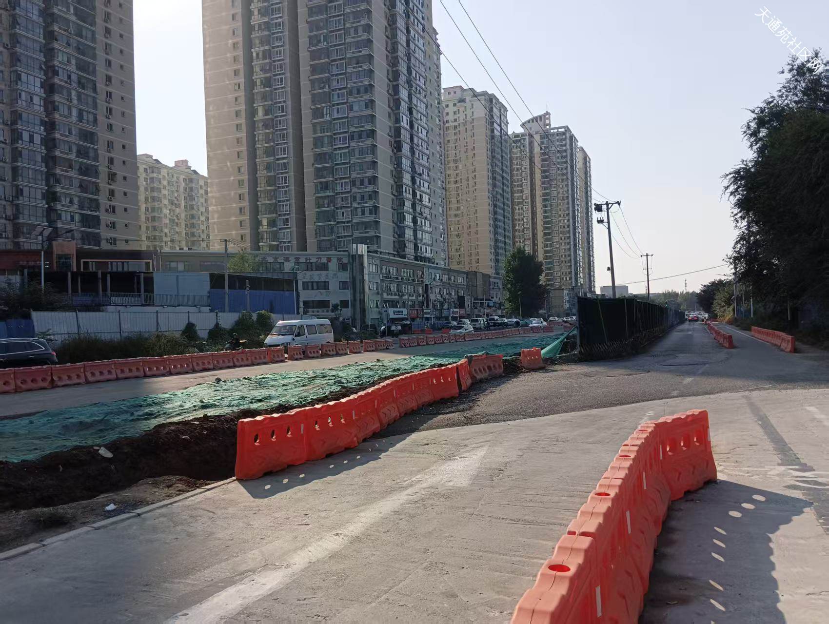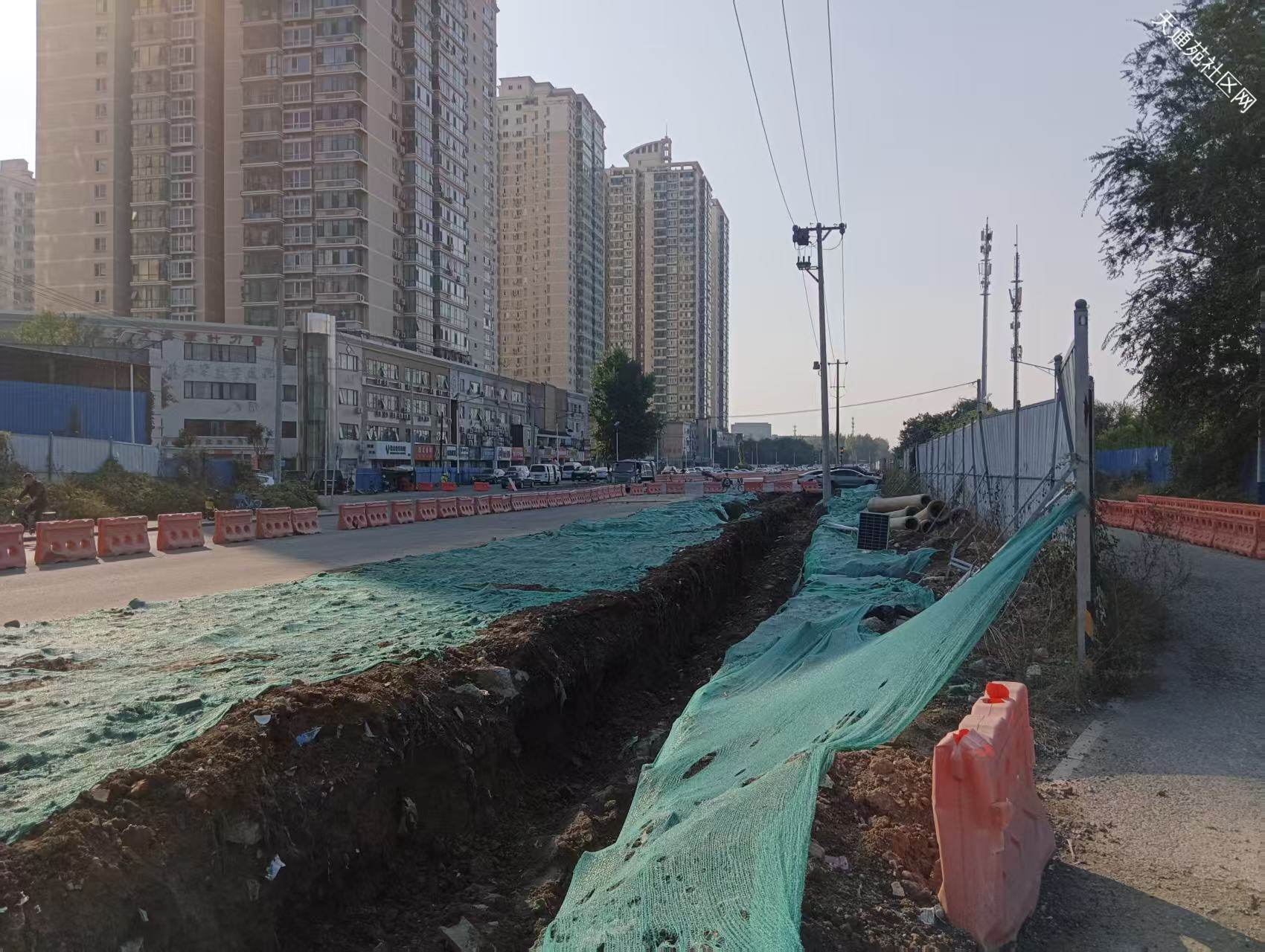 西三区北门至立汤路这段中间挖了条沟,两侧能通行,现场有工人值守,未见有工人施工,看这进度,年底弄完那就不错