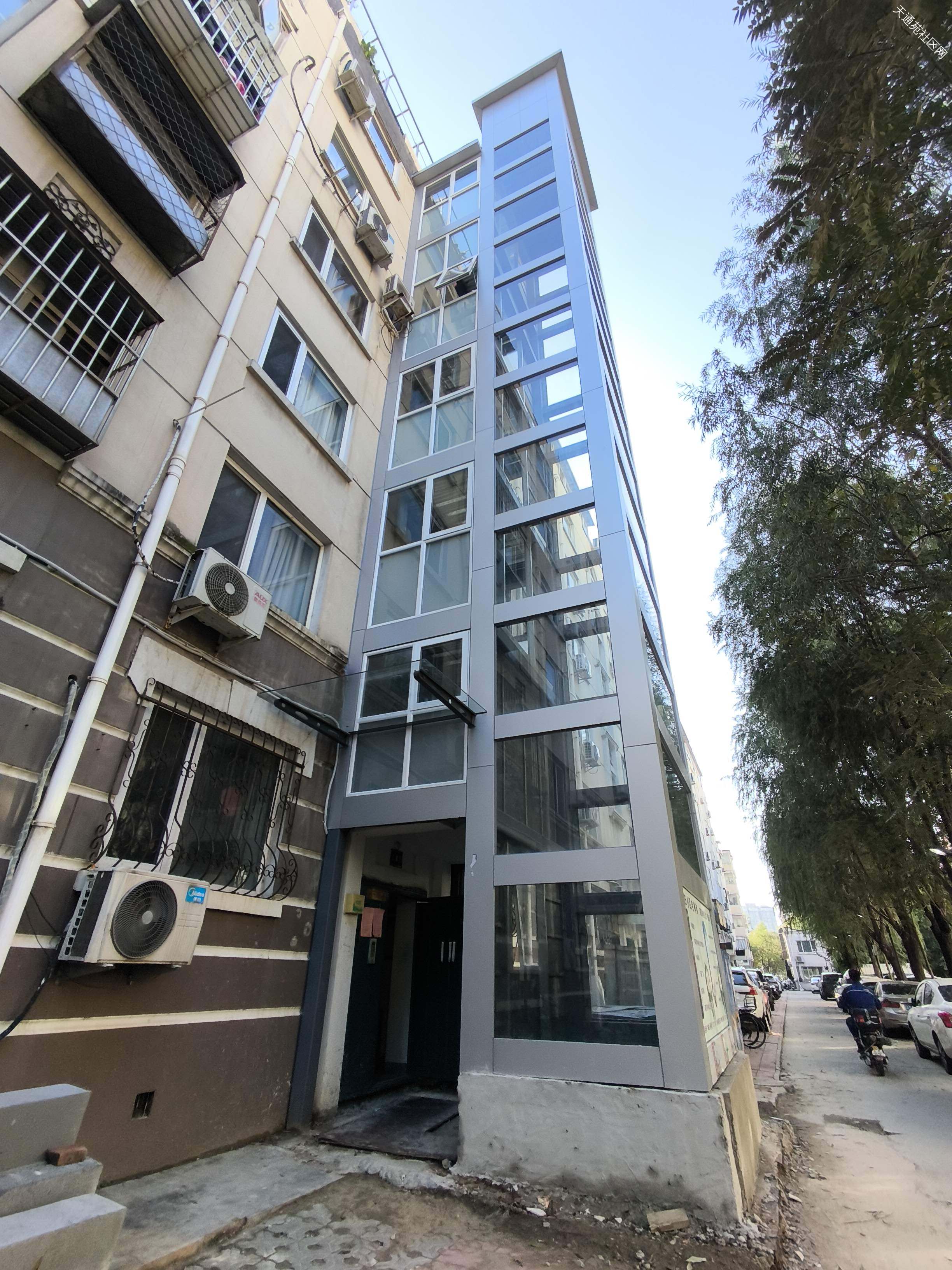 这个电梯弄的还可以,不影响马路。