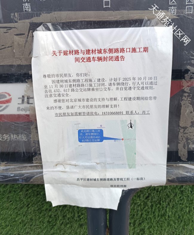 关于建材路与建材城东侧路路口施工期间交通车辆封闭通告