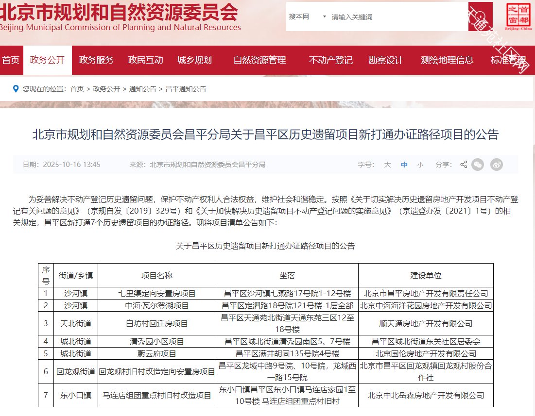 2026年第一批城市更新计划项目清单公布!昌平有85个