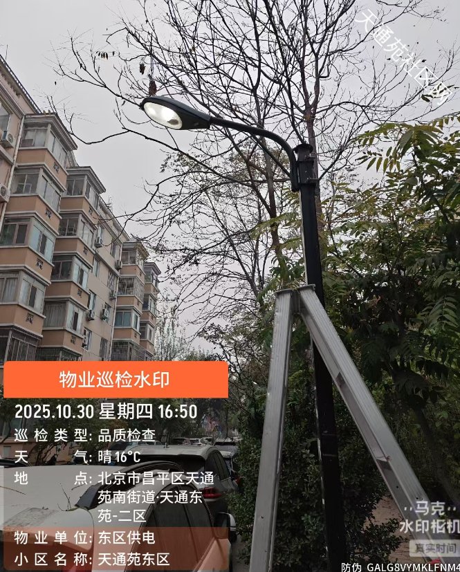 天南:025年10月29日居委会联系物业公司及时安排维修东二区12号楼1单元门前的第1杆路灯,10月30日已经维修完毕,路灯恢复正常照明。感谢居民及时反映,共同维护小区公共设施。