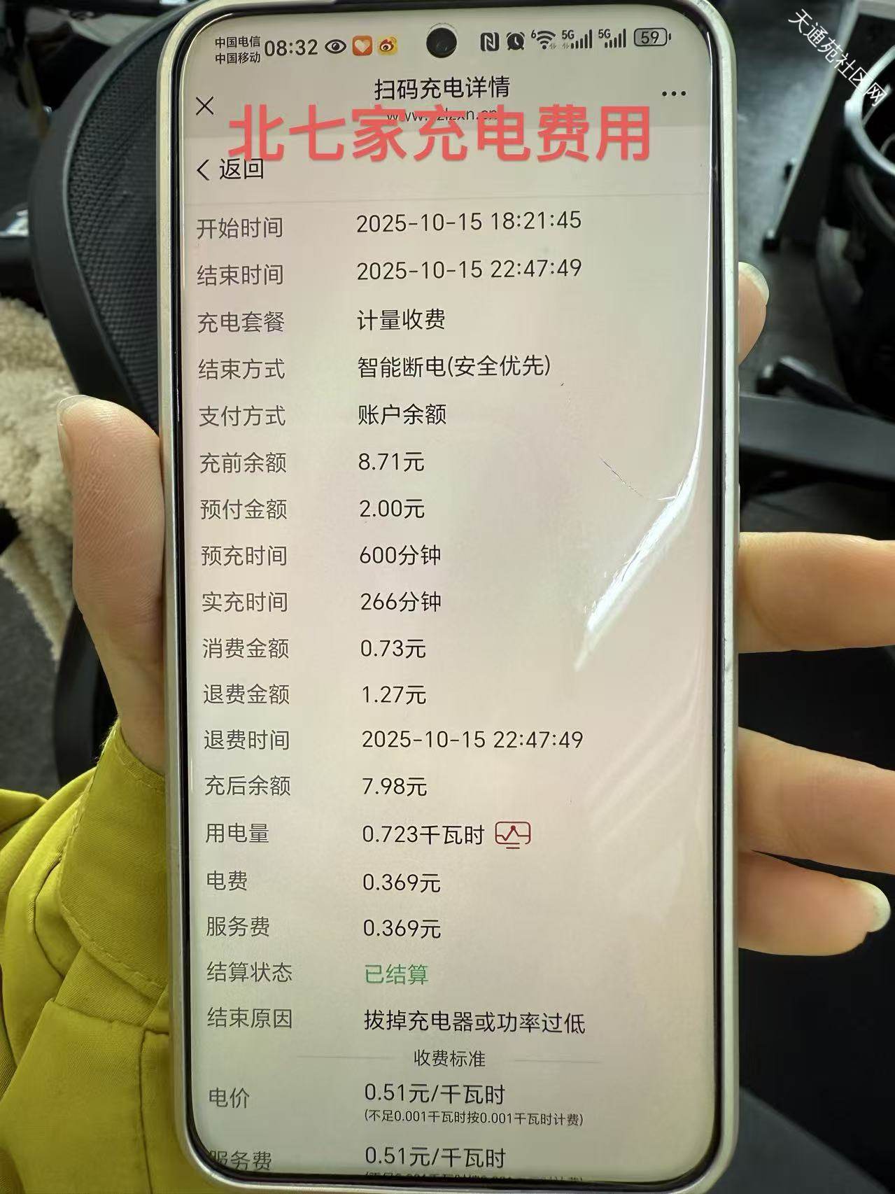 从2021年开始电动车在楼下充电就觉得我们天通苑的充电价格非常贵,我的车小牛M1,电池48V26ah,没有充满,定时5小时还是4小时就花5块多。当时两个同事买了同款爱玛的电动车,续航7、8十公里的,一个住北七家充满电1块多钱,另一个住未来科学城也是1块多充满。 我一直想找个机会对比一下同款车在这几个不同地方的充电价格,正好住北七家的同事这两天在天通苑充电,我说你拿来你的充电记录给我看看,是不是天通苑的充电费就是高,不对比不知道,一对比吓一跳!!!!