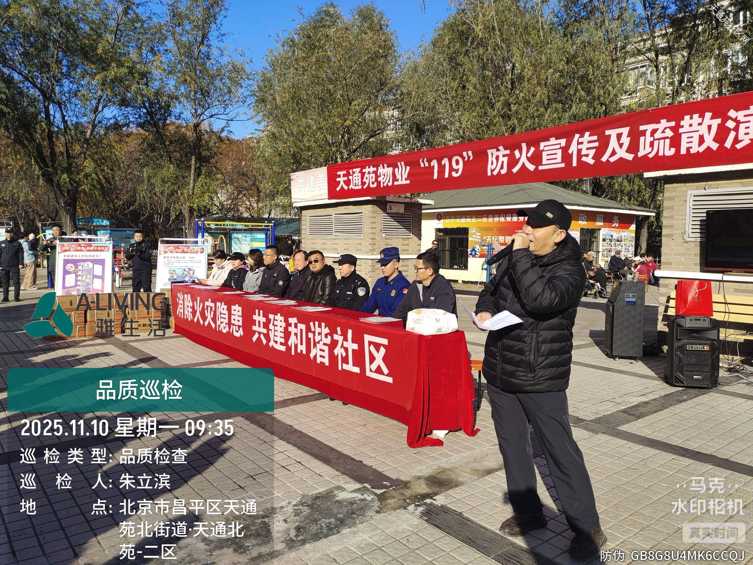 11月份是消防安全宣传月,为强化消防安全意识,提升应急处置能力,预防火灾事故发生。天通苑物业公司秩序维护大队联合北区项目部、天通苑派出所、天通苑消防队、北区居委会、业委会、小区居民在北二区广场开展了消防宣传及疏散演练。秩序维护大队人员现场讲解了油锅起火、灭火器怎么扑灭火源实操演示,并在现场向小区居民讲解了如何预防火灾,提示居民用火、用电安全,让参与者掌握火灾逃生技巧与器材使用方法。随后进行了疏散灭火演练,大家按预定路线迅速有序疏散,全程紧张高效。此次演练筑牢安全防线,为应对突发火情奠定坚实基础。