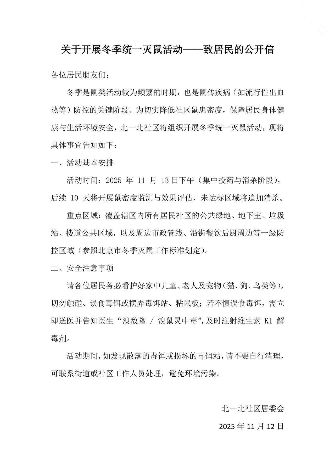 关于开展冬季统一灭鼠活动–致居民的公开信