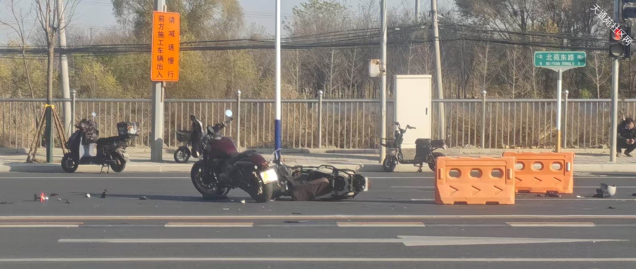 看到群里发的,今天下午一点多北苑东路清河桥北边,肇事车辆躺地上,骑车的人不知道去哪了!摩托车和电瓶车。还挺严重,一个人看着像昏迷了。救护车来了,地上躺着一个被摩托车压着,医护人员把摩托车扶起来的,北苑东路上摩托车开的特别猛。这条路太混乱了,出事是必然的