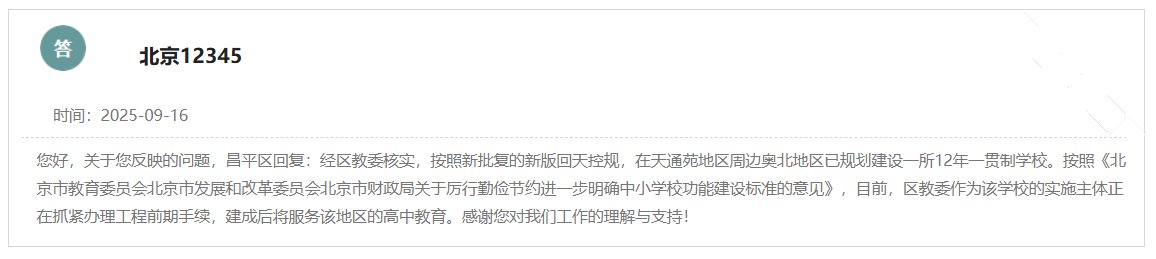 天通苑没有高中已经一二十年了, 有关部门得过且过,推三阻四,能糊弄和敷衍一年算一年,终究人口会下行,高中会过剩。