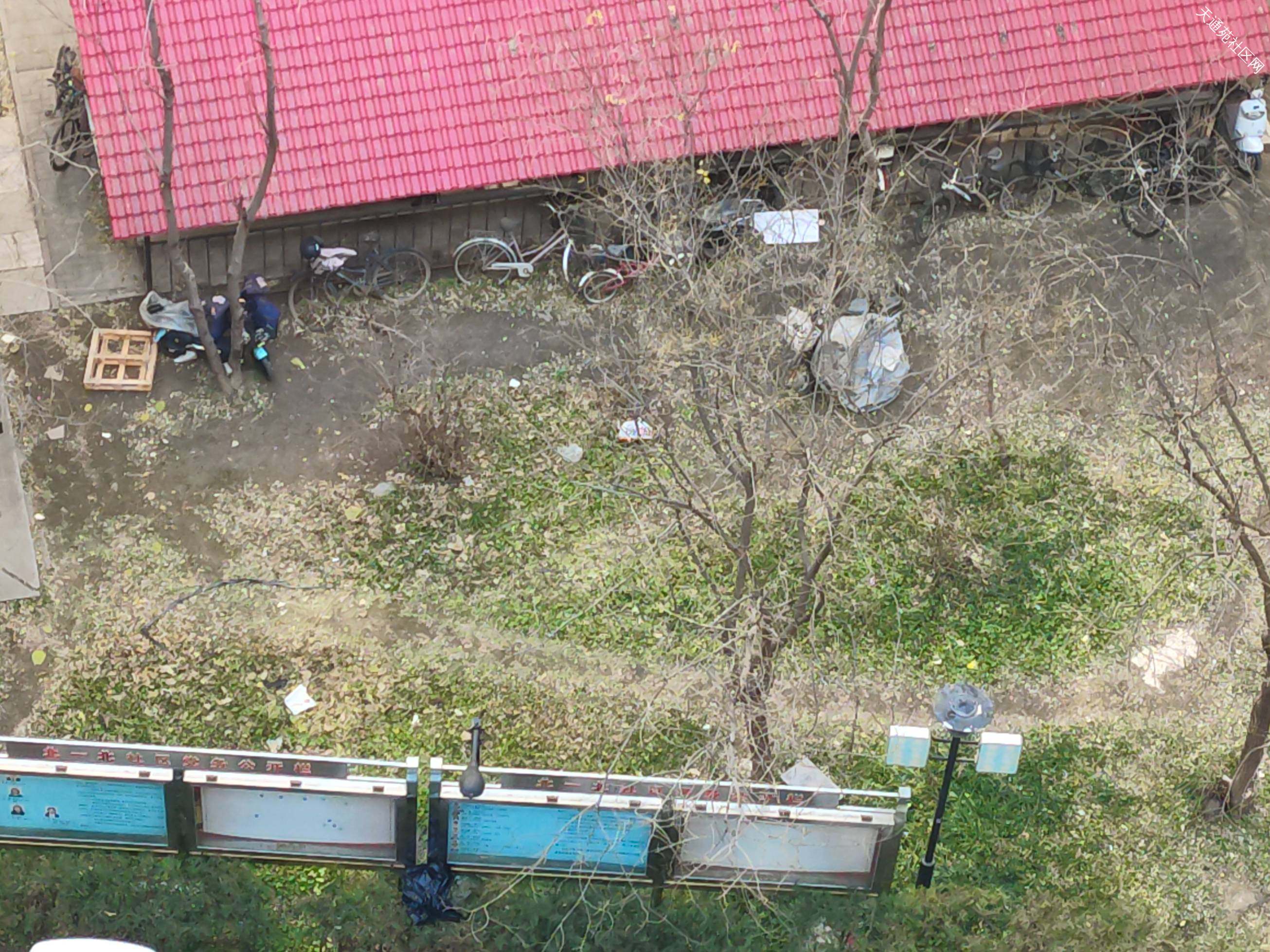 北一17号楼南侧绿地里好多垃圾,废弃自行车外卖车,破椅子,塑料袋,各种杂物,请物业及时清理下。还有18号楼东侧靠近小区外围铁栅栏出老有拾荒者堆放的垃圾车和杂物成堆,塑胶雨衣挂在铁栅栏上花花绿绿的,整个一个废品站的感觉,请物业及时清理,劝阻,不要再公共区域堆放垃圾!!!!