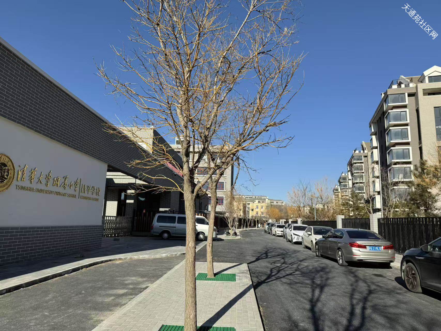 西侧正对清华附小东门,新修的路两头安装了闸机