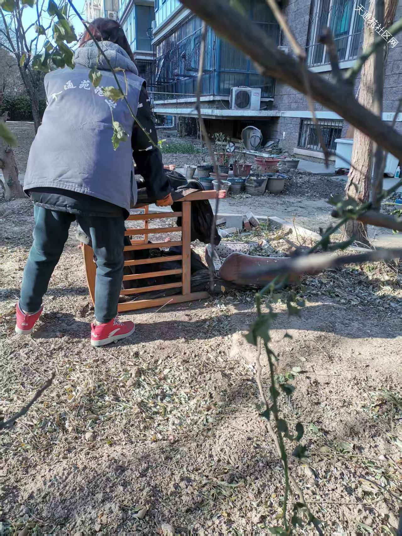 请物业清理北一区东南门两侧34#35#楼绿地里的易燃杂物和大件垃圾