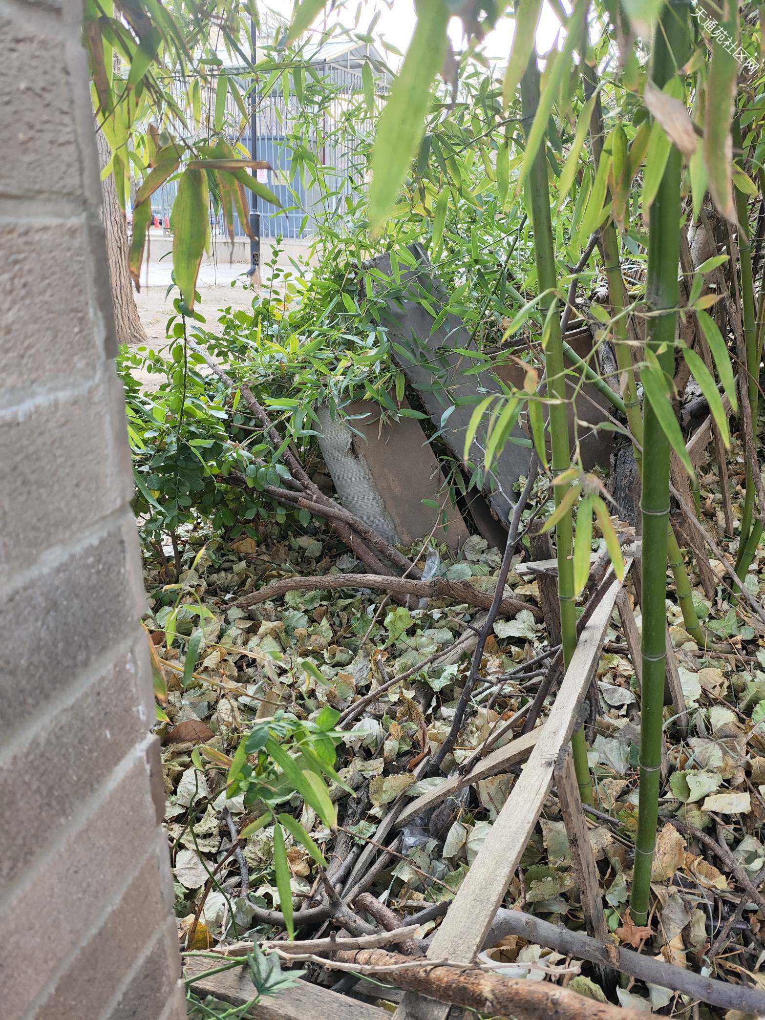 请物业清理北一东南门两侧34#35#楼绿地里的易燃杂物和垃圾,这一侧靠近小区外侧的铁栅栏,路过看到垃圾杂物成堆,还有路过的人往栅栏里丢烟头,这么多杂物,天干物燥刮大风,有火灾风险