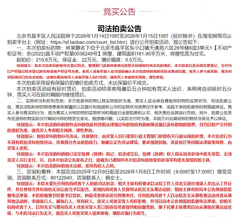注意看提示,这房子还被之前的所有权人占着呢,就是拍下来还要想办法清,适合“有力人士”,普通老百姓还是绕着走吧