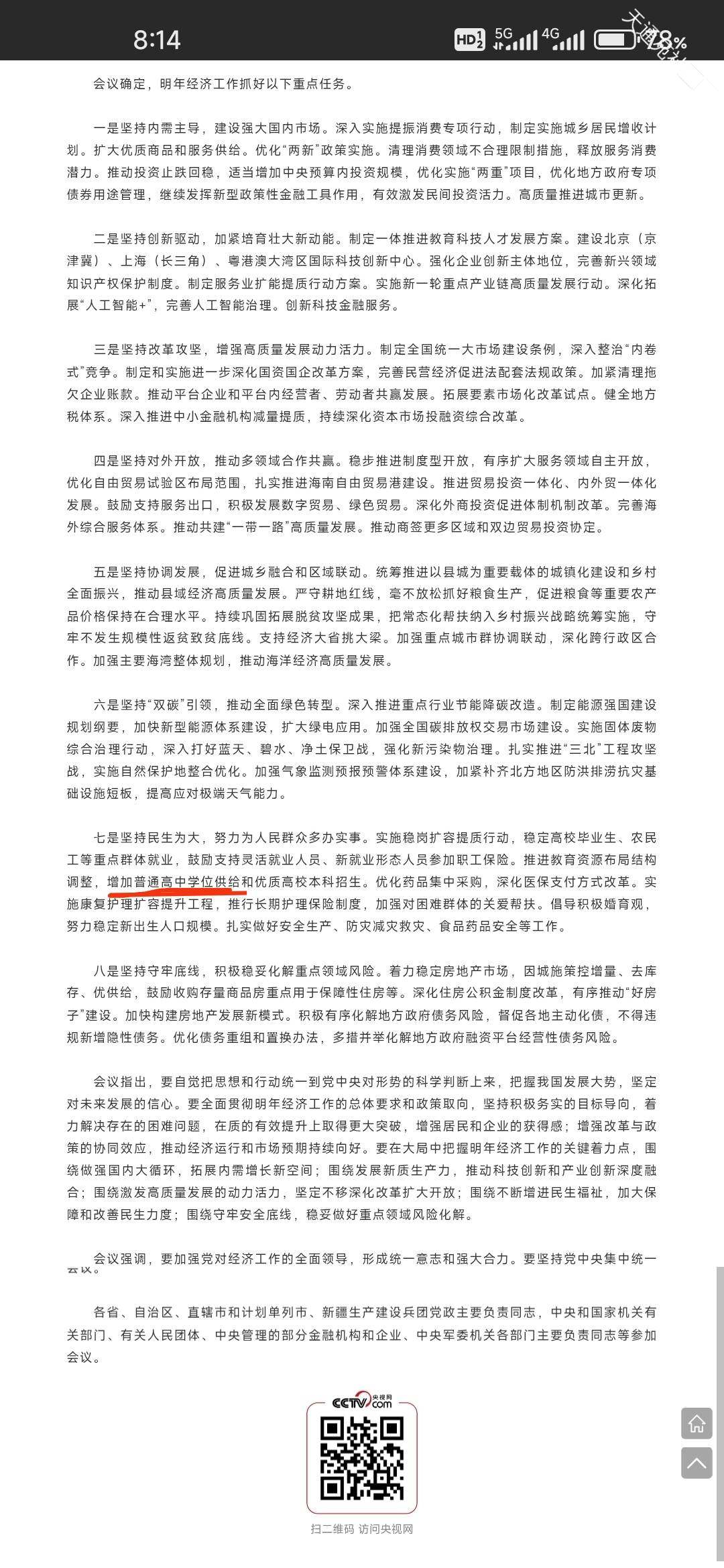中央经济工作会议要求增加普通高中学位供给