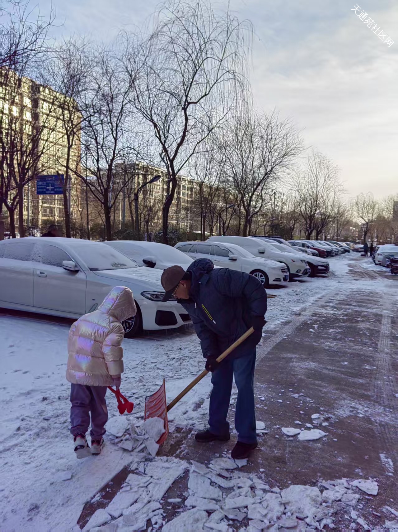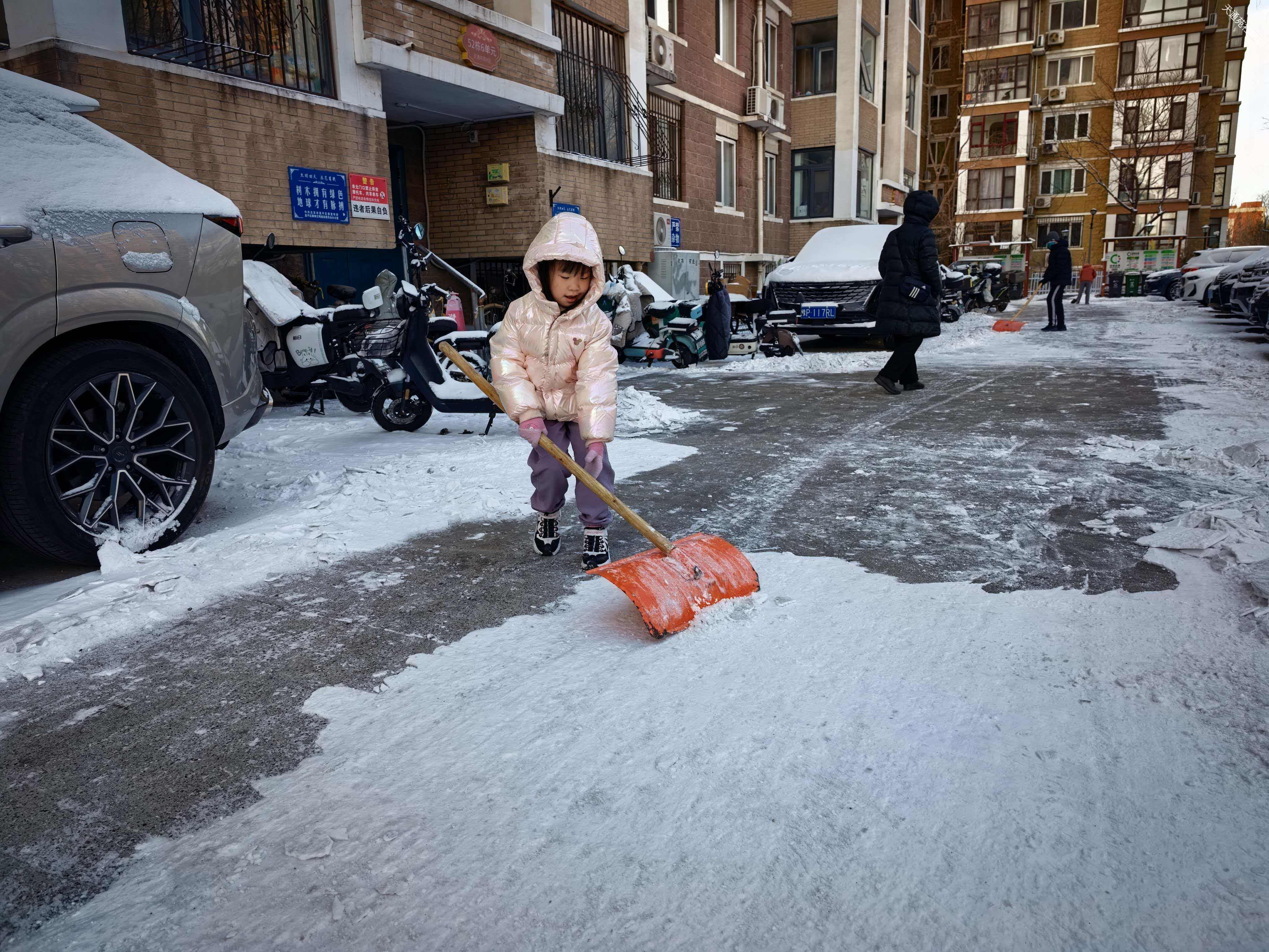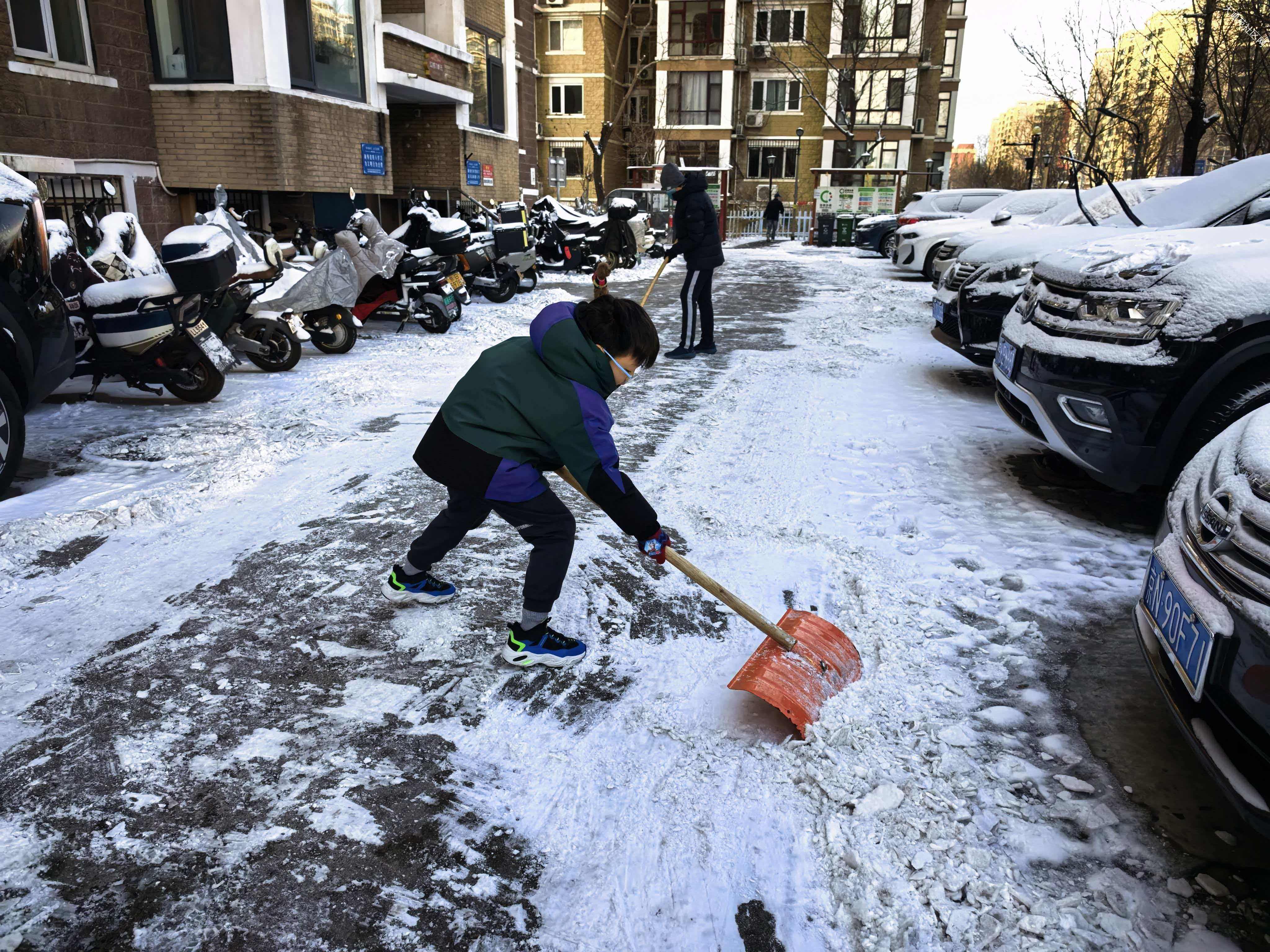 其实就应该是雪天刚结束时赶紧清扫最容易。等过两天雪都压实了就不好清理了。