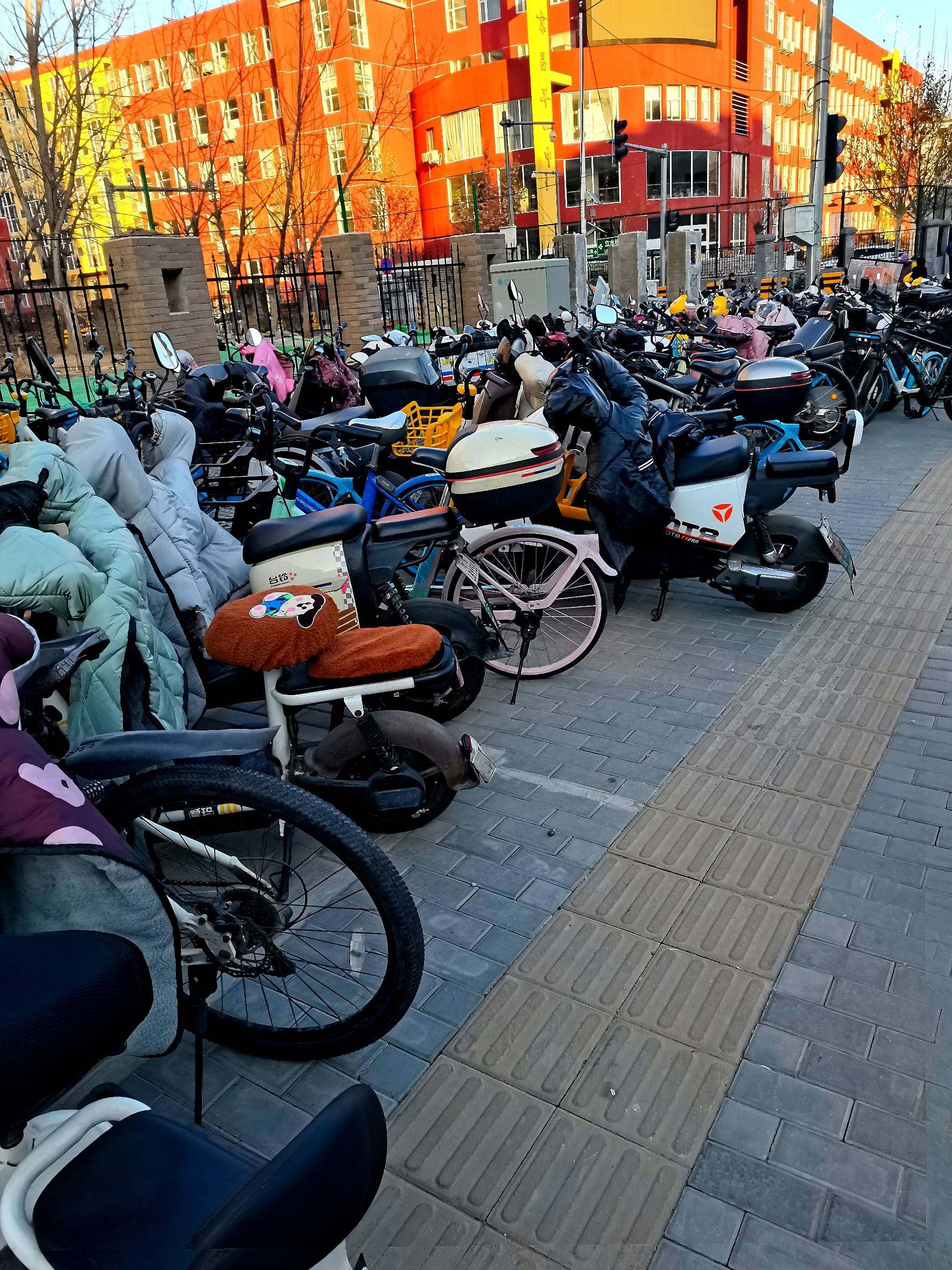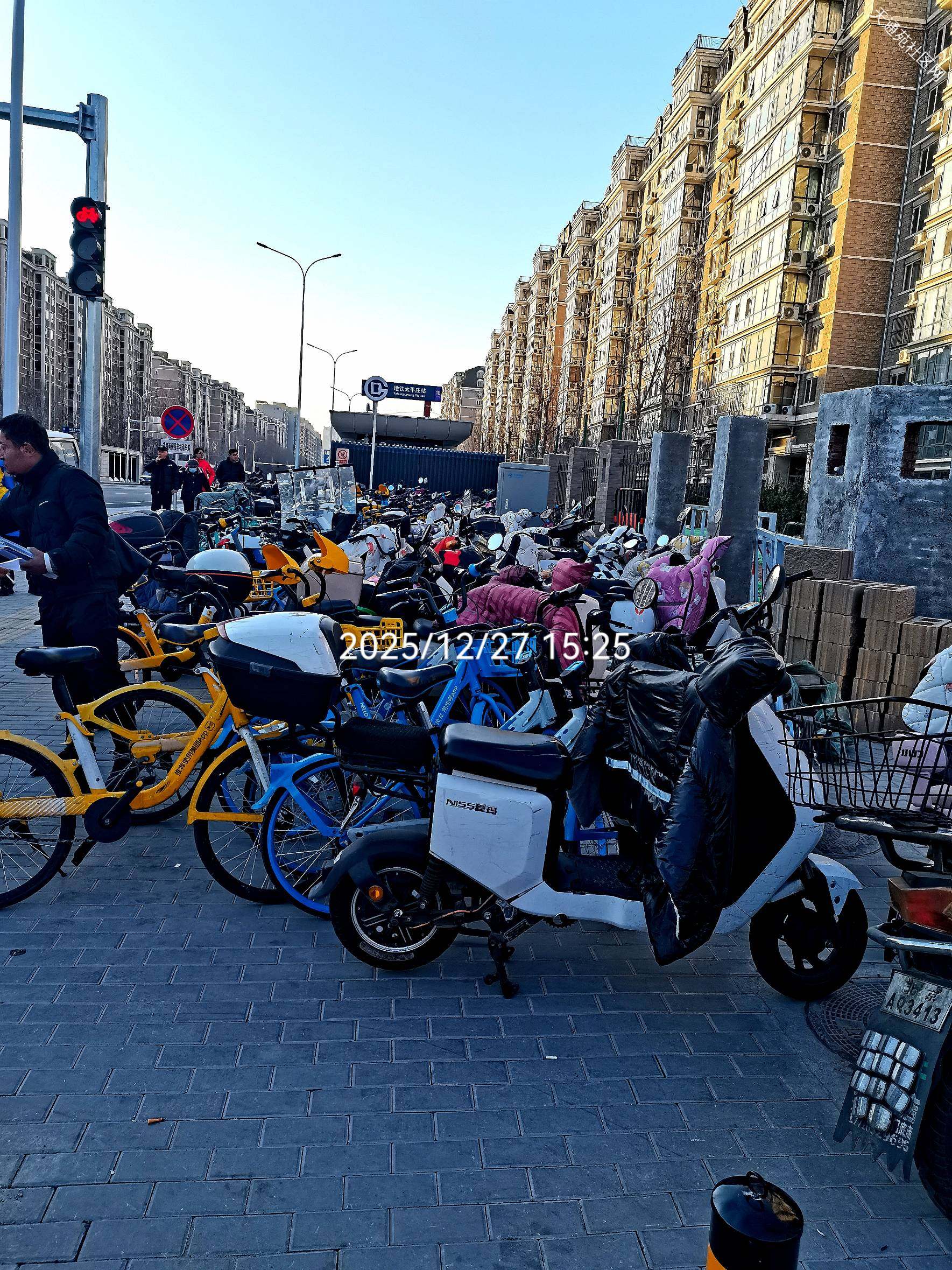 看看地铁太平庄站外电动车、共享单车,这是中二街东三路红绿灯路口西北角,刚刚开通第一天,可能还有人不知道已经开通,再加上今天是周末休息,未来不敢想象会不会像东站一样,车站被团团包围住