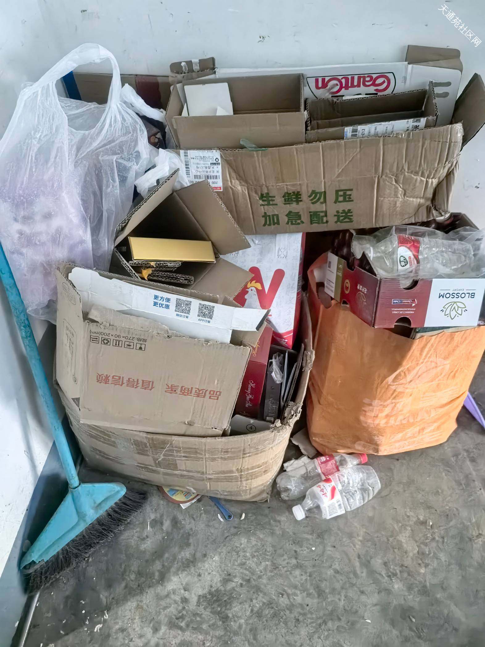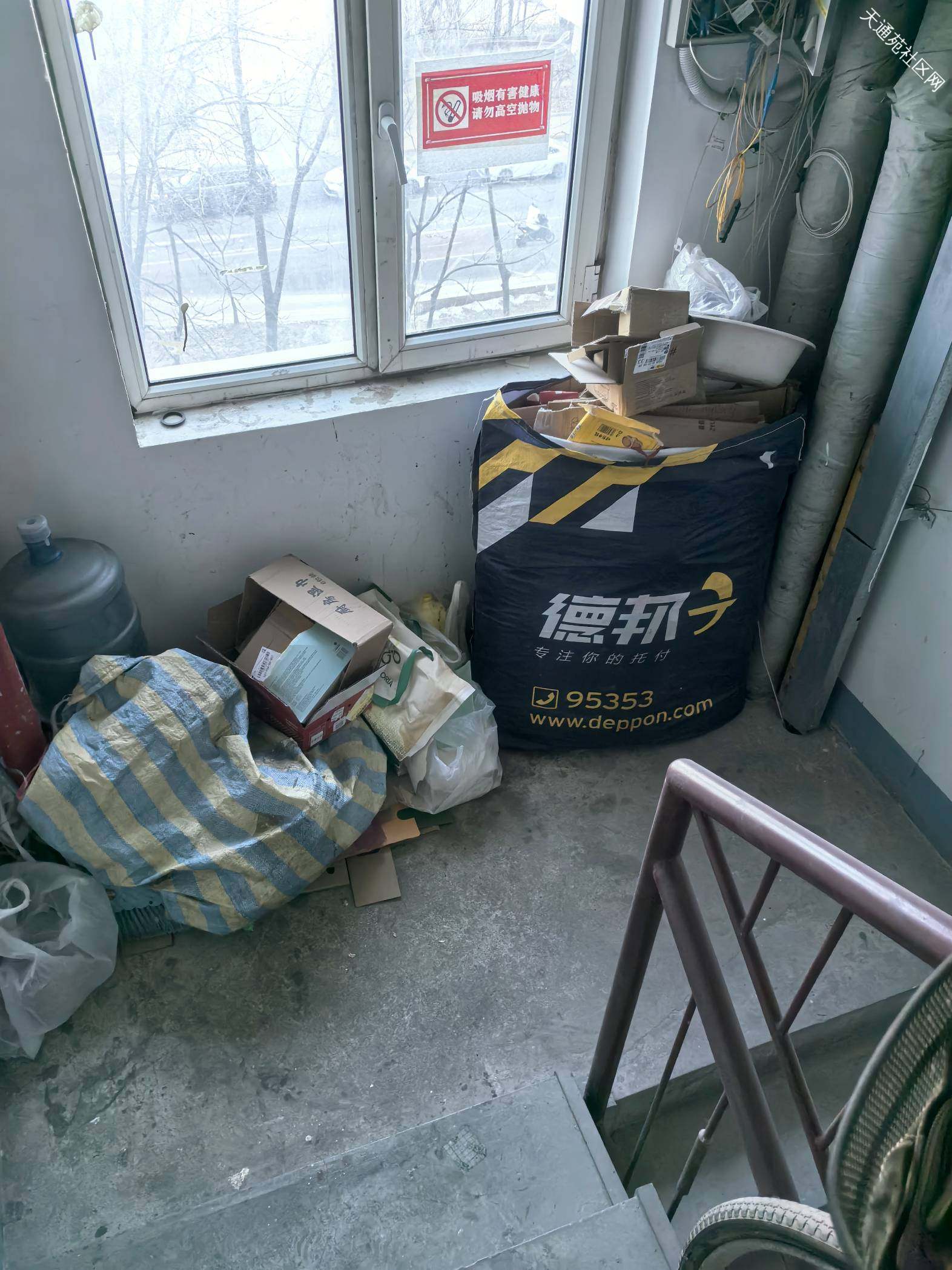 请北二区物业清理一下楼道卫生和杂物