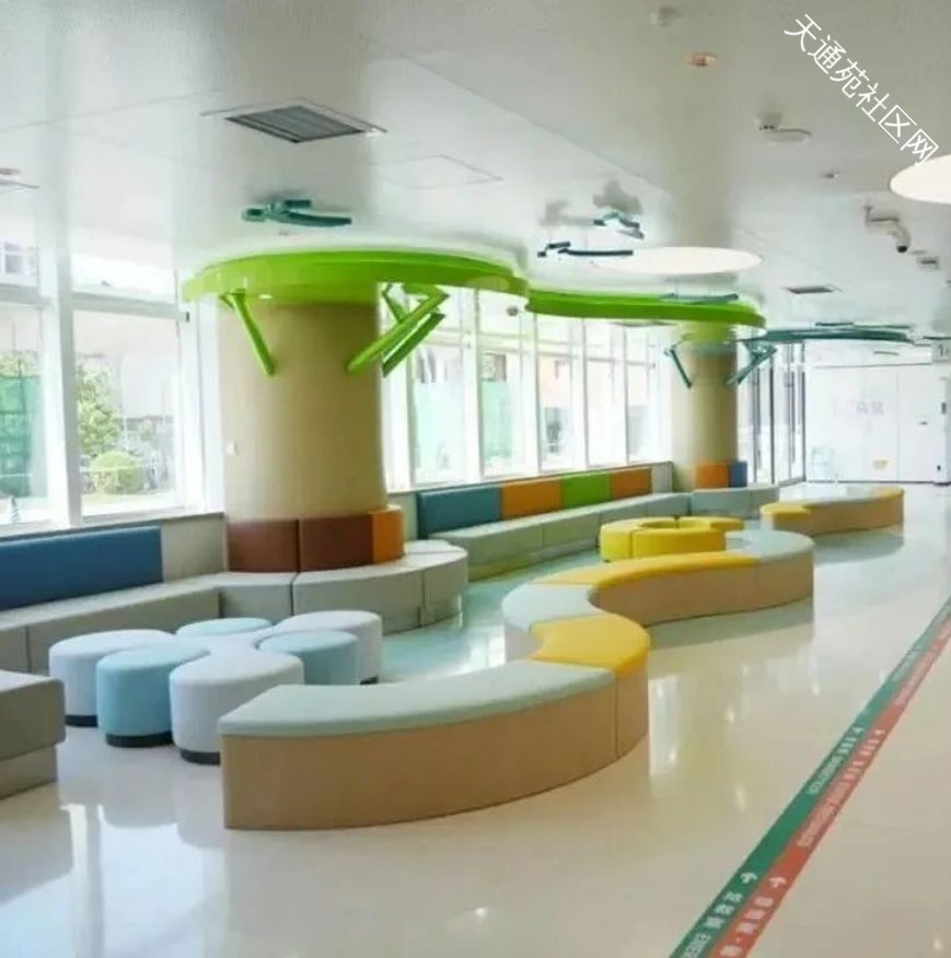 走进北京清华长庚医院二期儿科诊区,柔和的暖光取代了传统医院的冷白灯光,墙面绘有森林动物卡通壁画,候诊区设置了铺着柔软靠垫的童趣座椅、摆满绘本玩具的阅读角,还循环播放着经典动画片段。诊室内,医生用卡通贴纸引导孩子配合检查,让治疗过程变成趣味游戏。
