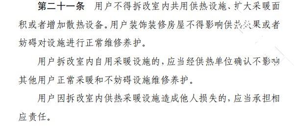《北京市供热采暖管理办法》中第二十一条的规定