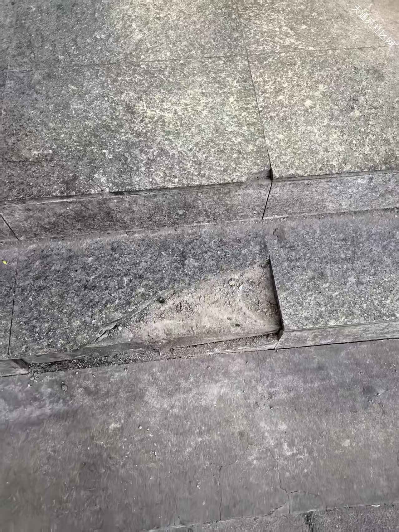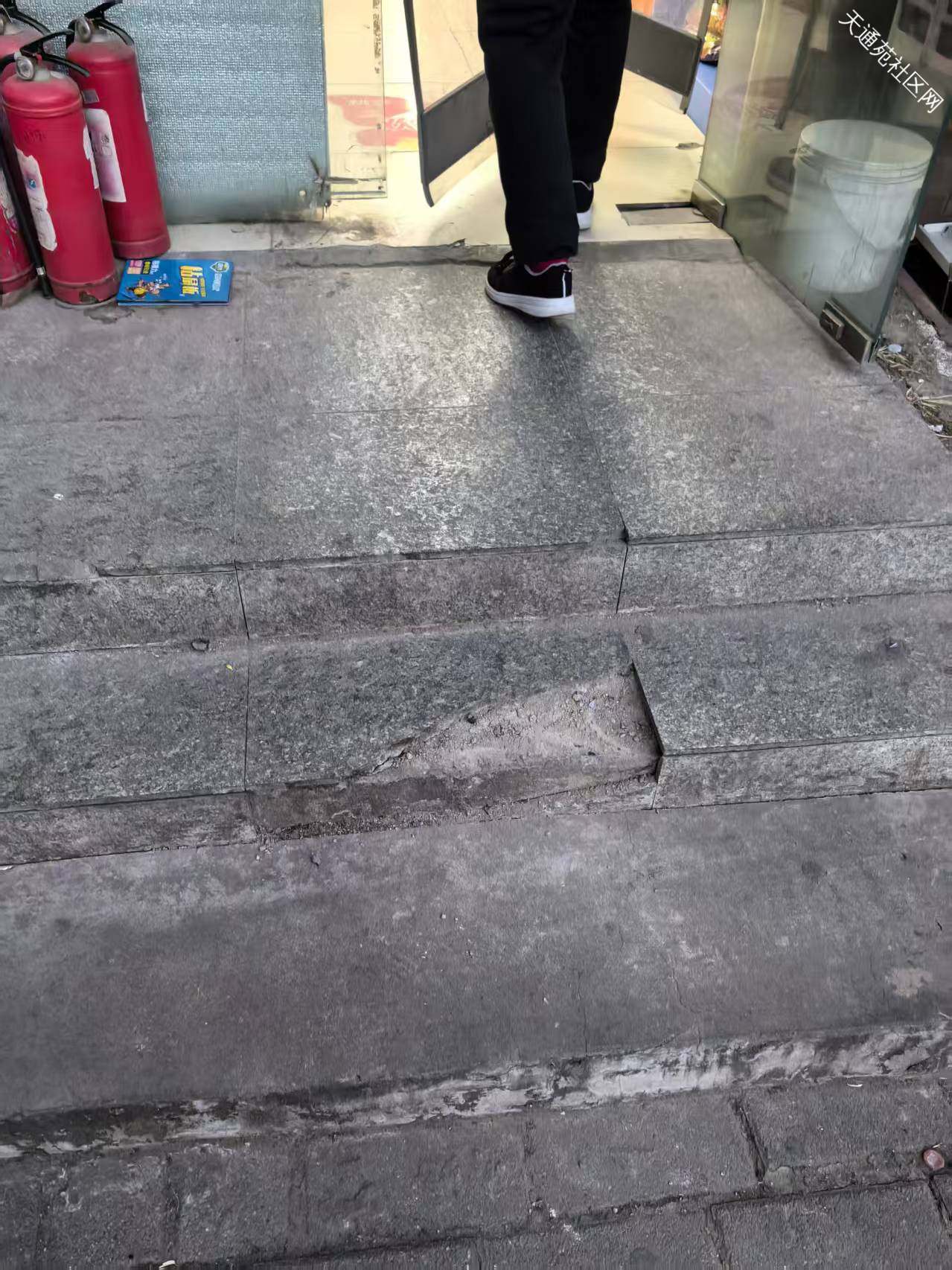 北二南门新发地生鲜超市小东门外的台阶瓷砖破损,很容易踩空,麻烦修复下,谢谢。