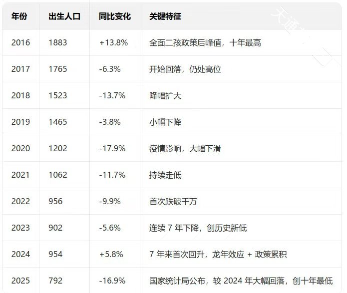 2025年全年的生育人口统计出来了,2025年是最近10年最低的出生率