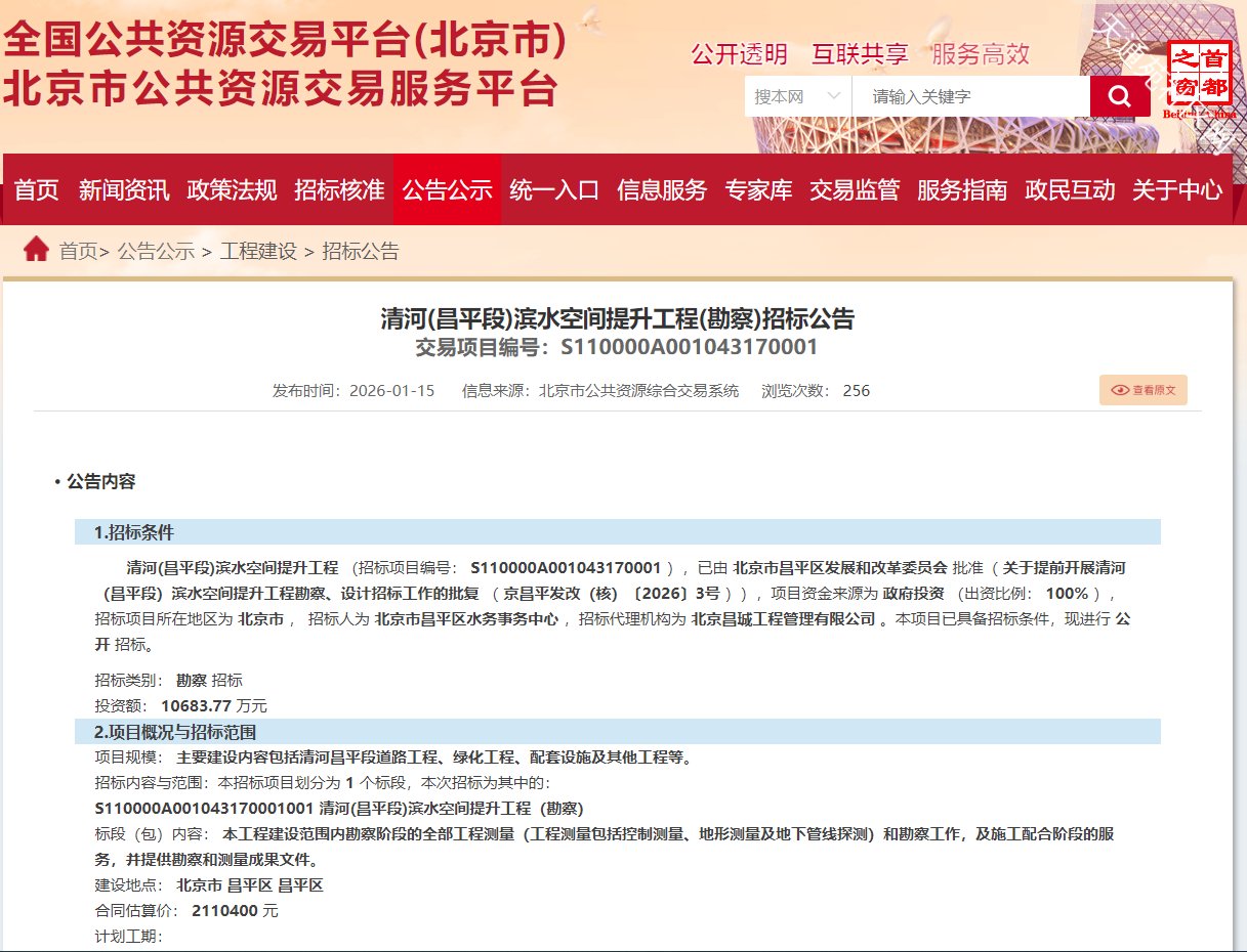 清河(昌平段)滨水空间提升工程(勘察)招标公告