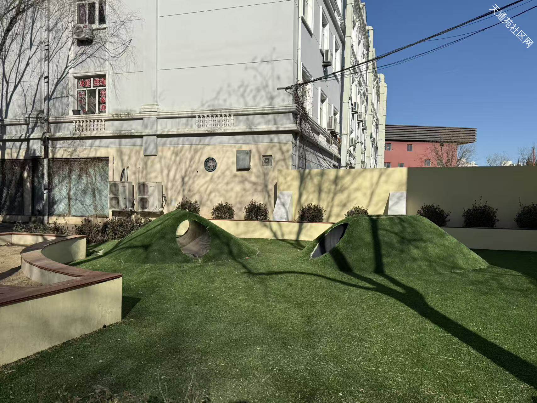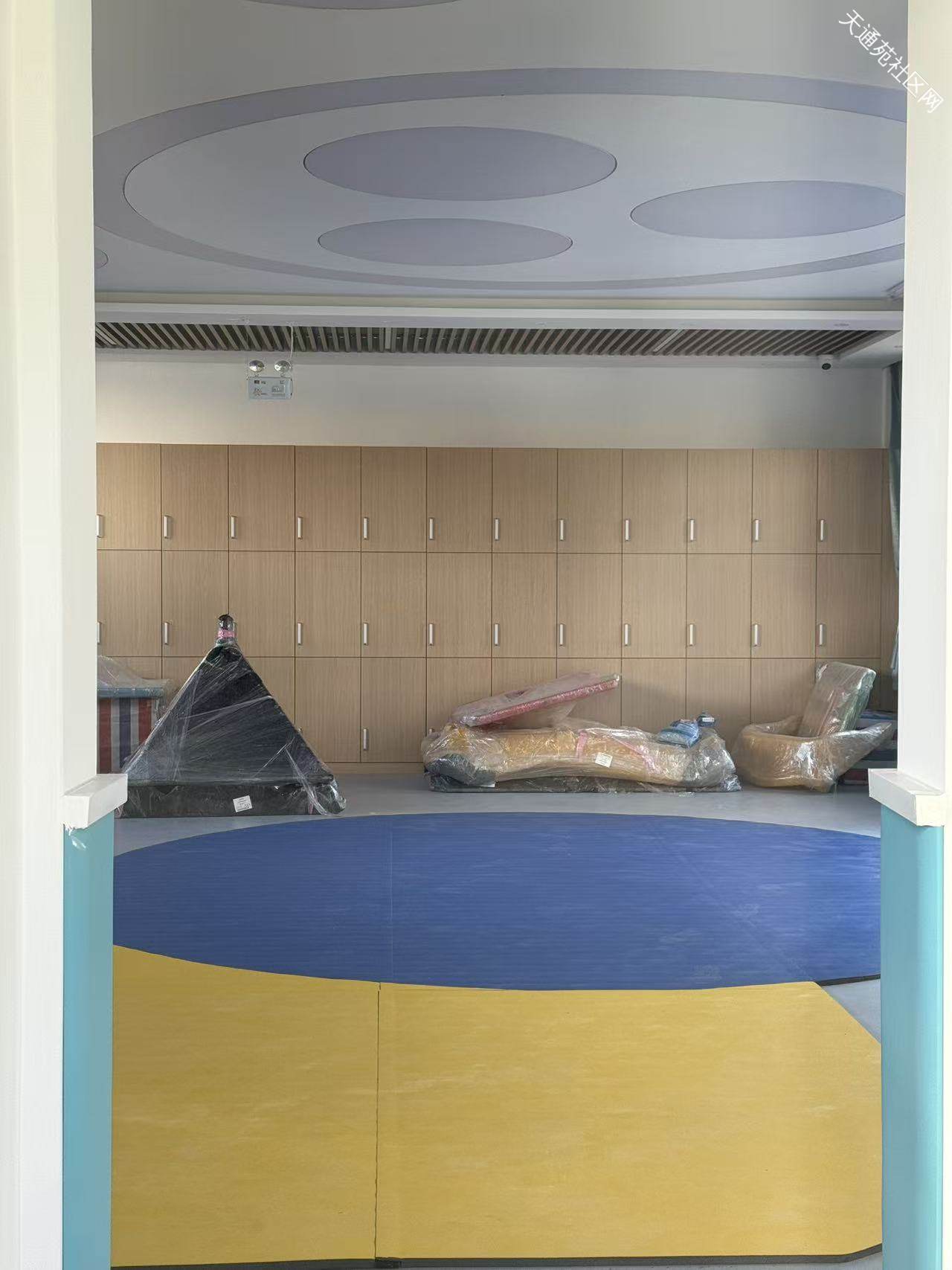 四区22号楼对面,挨着锅炉房这个2层小楼收拾好了,围起来的院里彩色涂鸦,边上还有儿童玩的洞洞设施,隔着门看了看,里面空间挺大,不少新设施,特别多的柜子,看起来像个幼儿园或是托管的样子