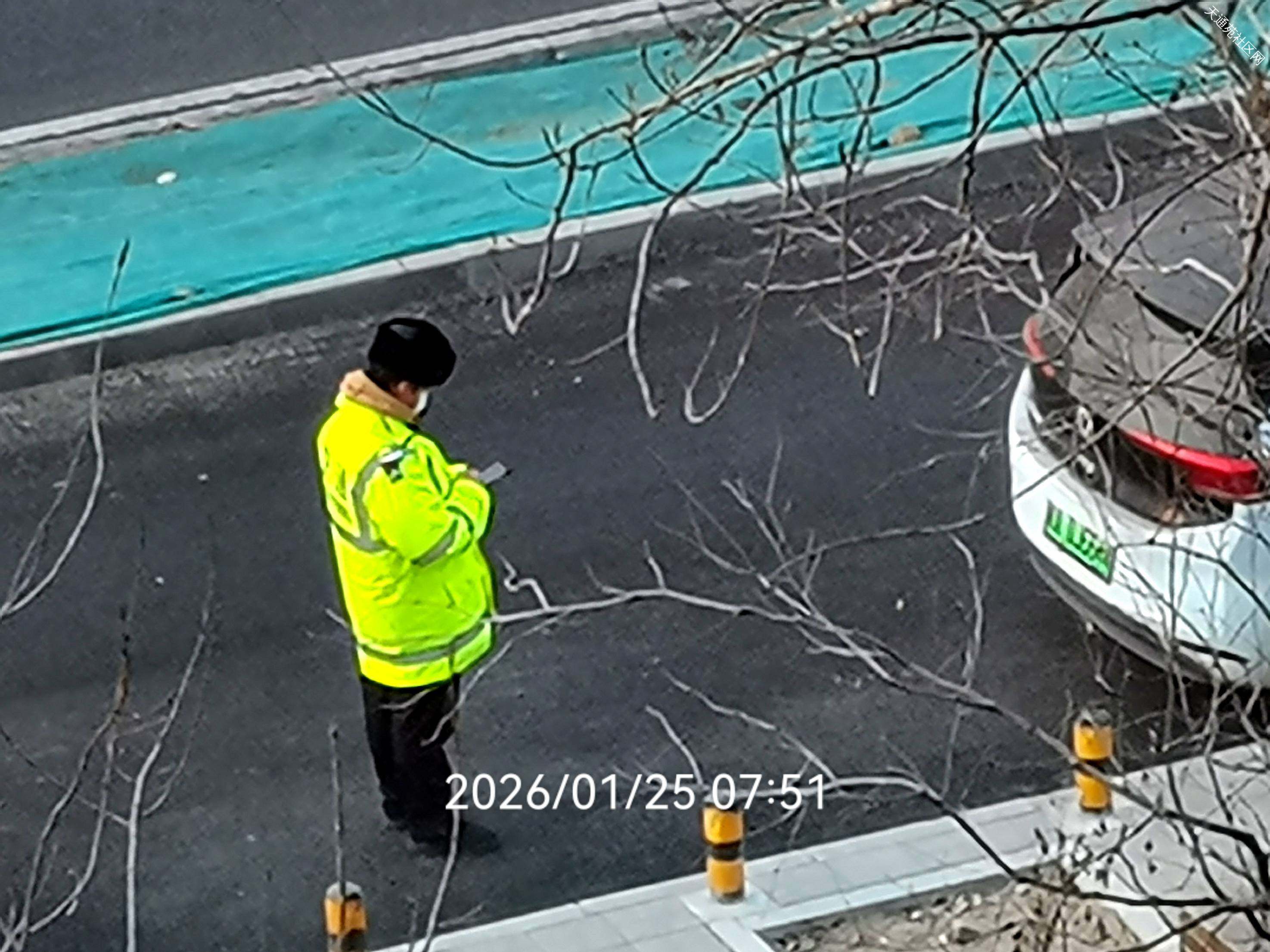 北三南门外辅路的临时停车,大清早帽子叔叔来拍照贴条了,有位车主正好在旁边,也算是逃过一劫了