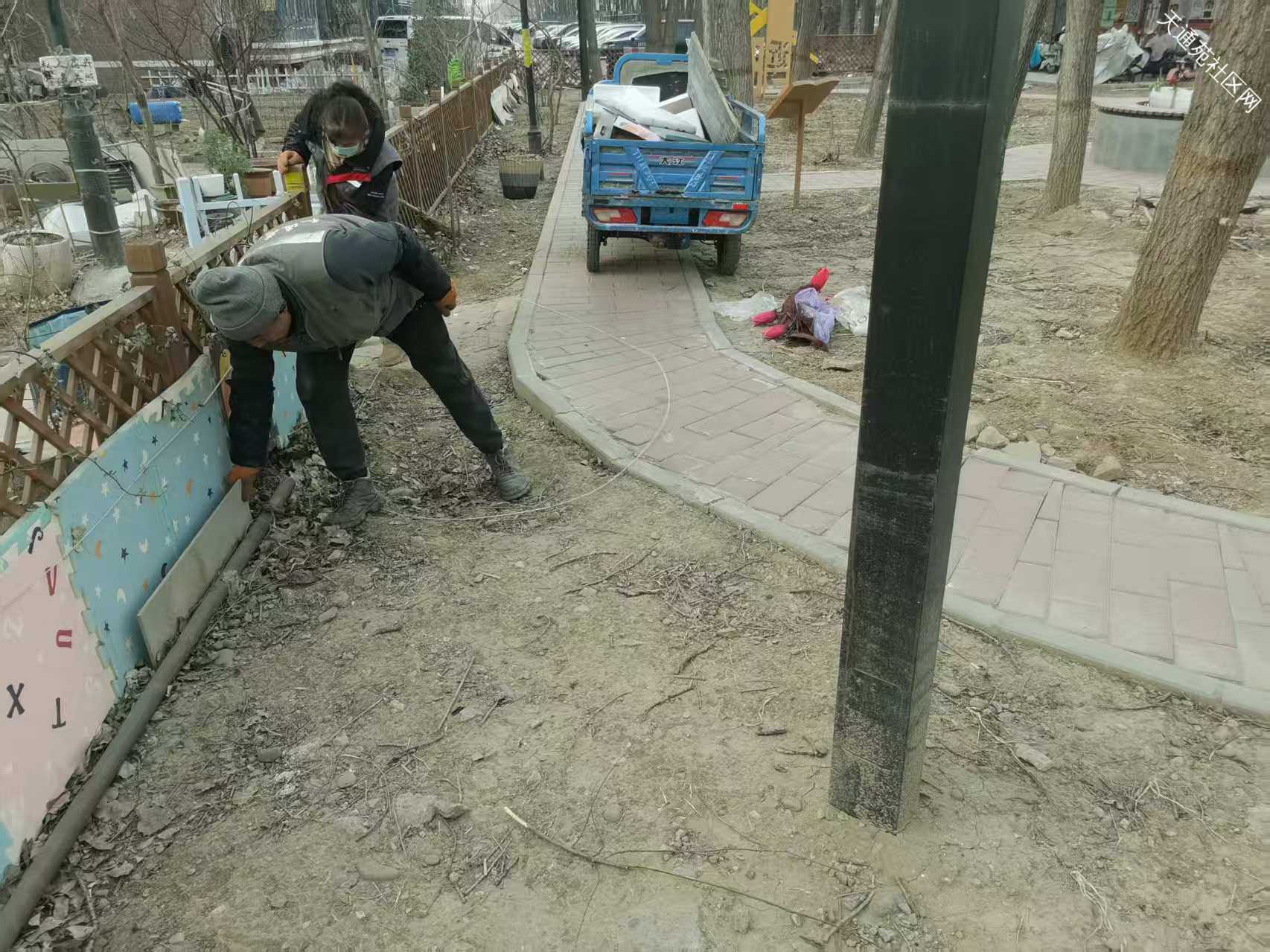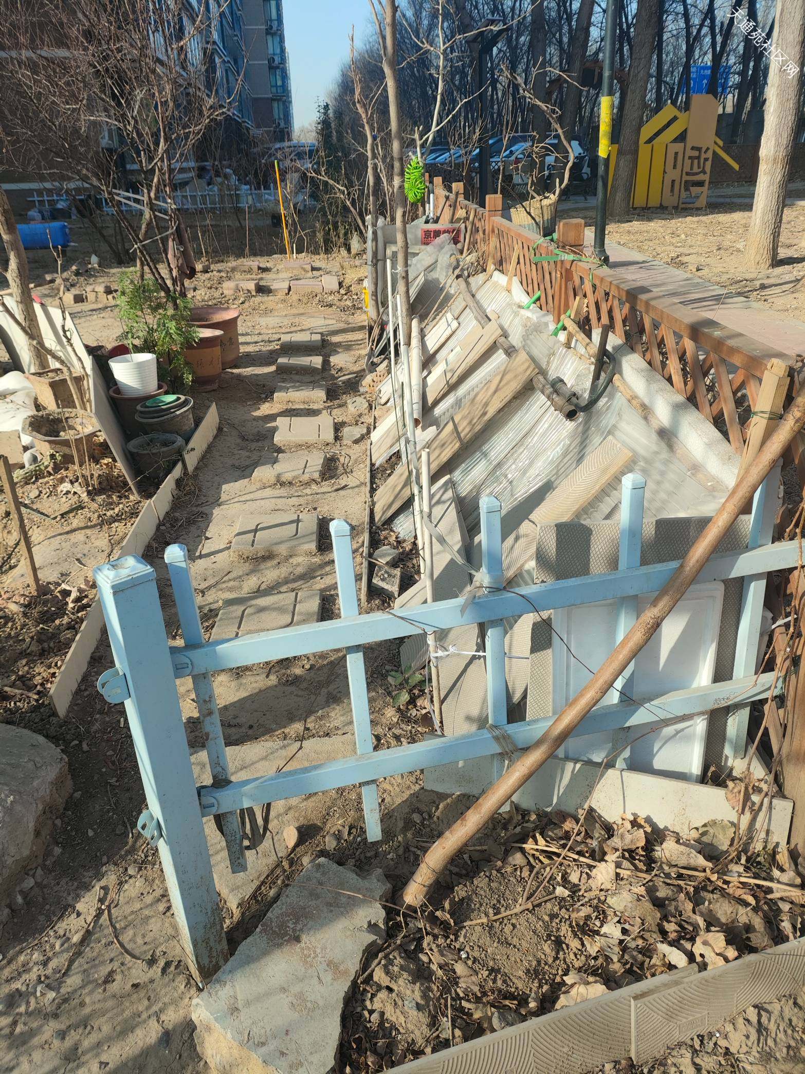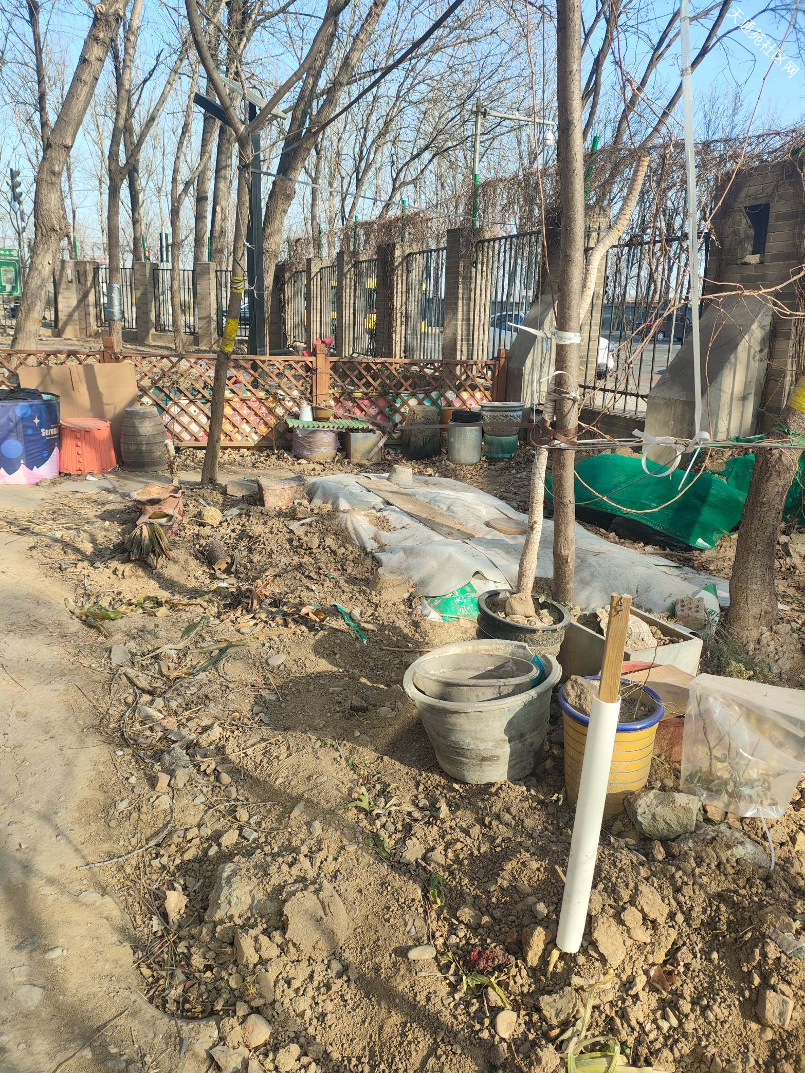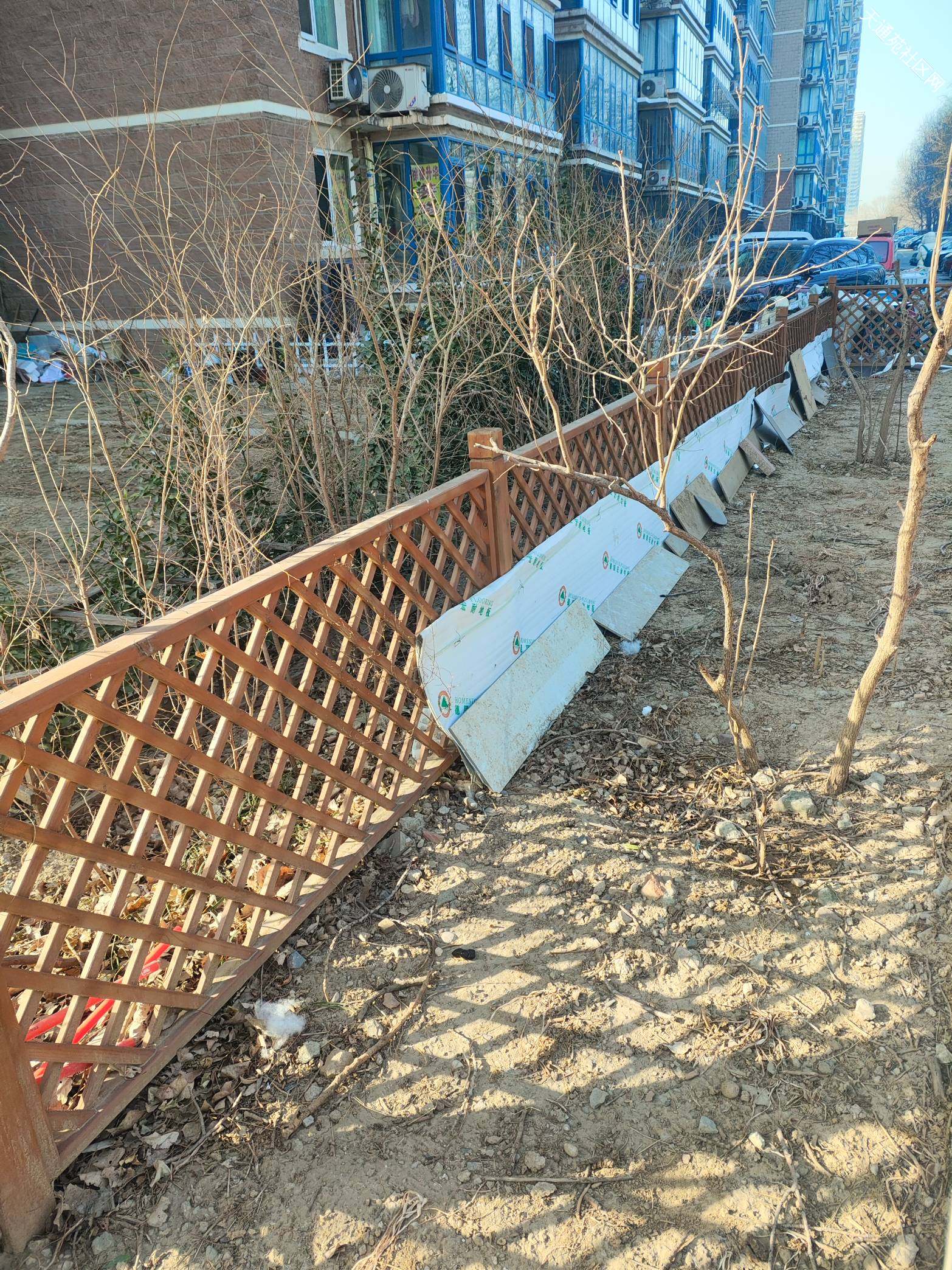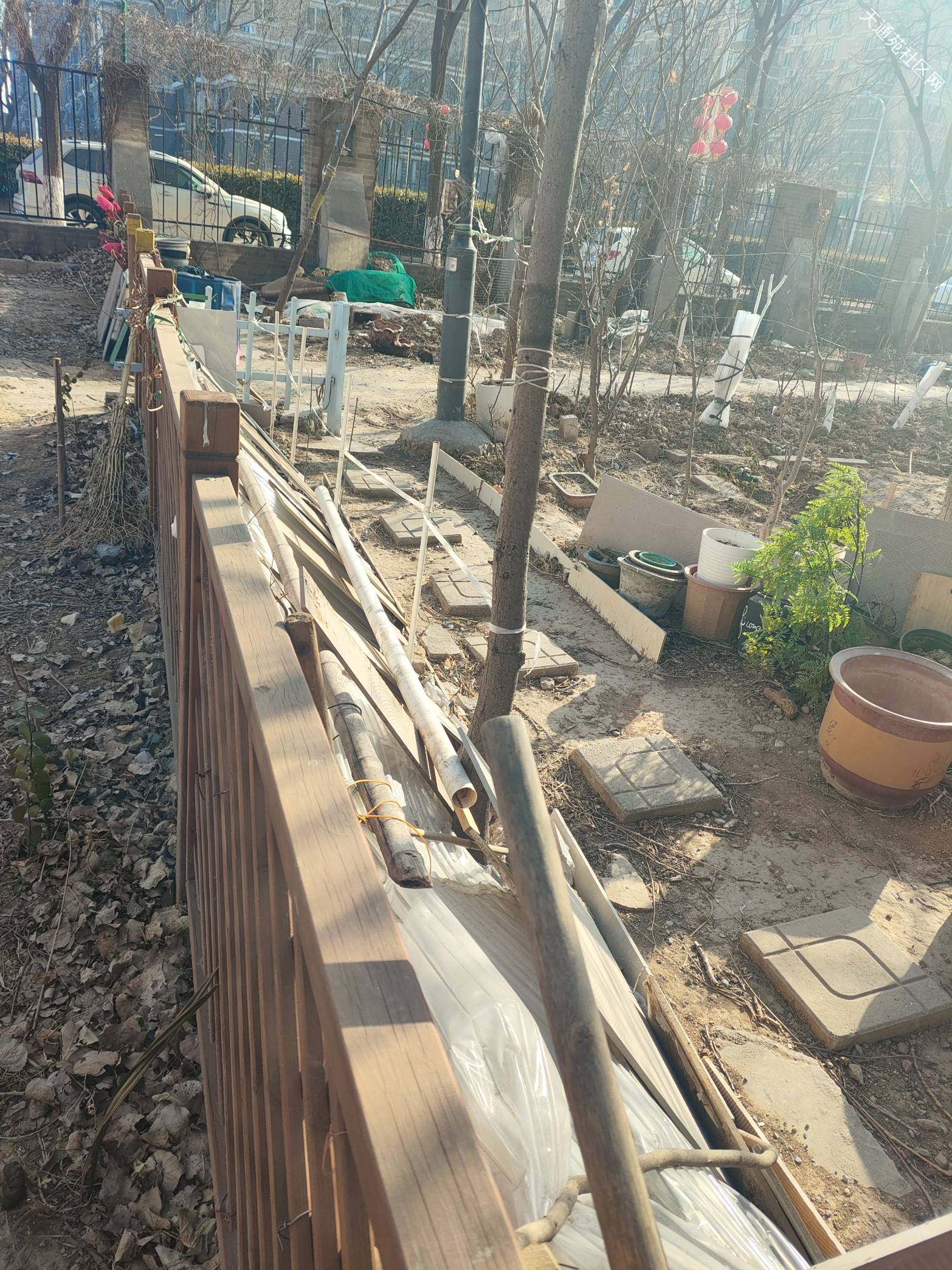 北一东北角绿地本来是社区微改造的小花园,为的是提升小区居住环境,但是被个别人利用长期堆放垃圾杂物成了花花绿绿的垃圾场!!!私自挖地种地东一块西一块跟牛皮癣一样丑死了,请物业尽快清理杂物,特别是长期堆放成摞数量众多的破花盆,绑在树上的脏假花,捆绑在木栅栏上的破塑胶,破瓷砖,乱系的破绳子,私自搭建的铁丝网!地上的乱砖头瓦块,成卷的破塑胶布!彻底恢复绿地原有模样,维护小区环境秩序,还业主清洁,有序的花园绿地!