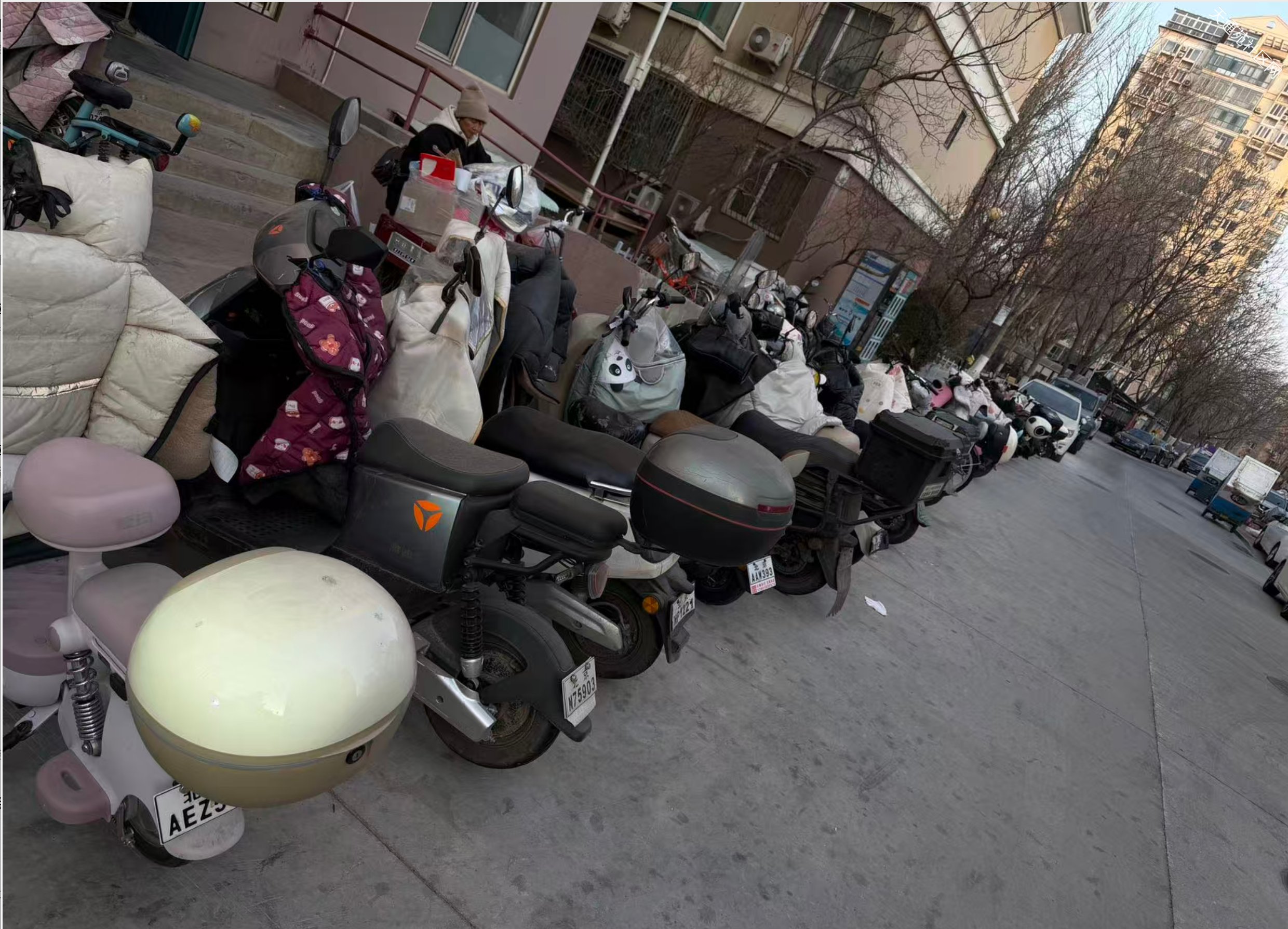 另外这些停放的电动车占用了太多的地上空间,让小区里本来就不好停机动车的人,更难寻找停车位;