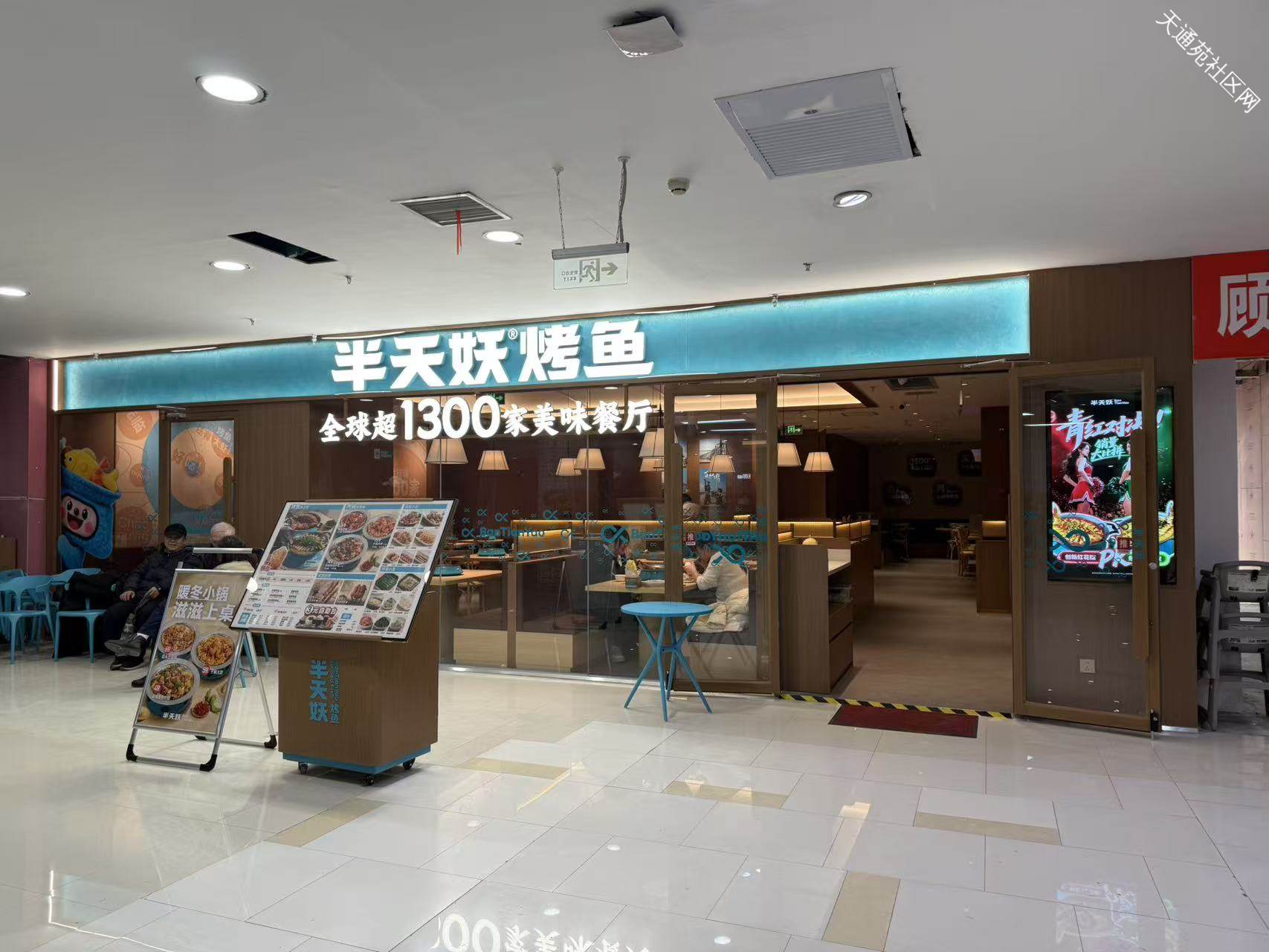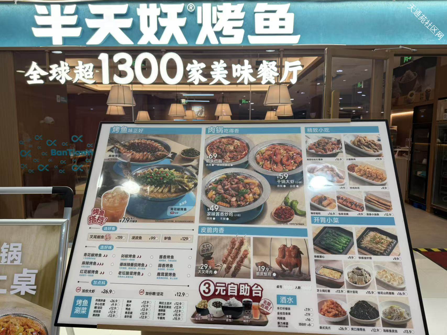 四层新开了半天妖烤鱼,在呷哺对面,一层大门口也挂了牌子
