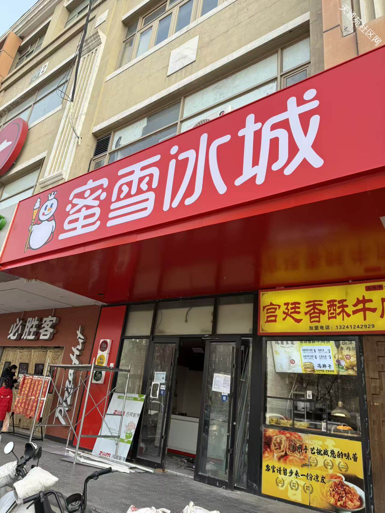 国泰商场最近新变化,一层的蜜雪冰城装修要重新营业了,问了下工人,预计周六开营业