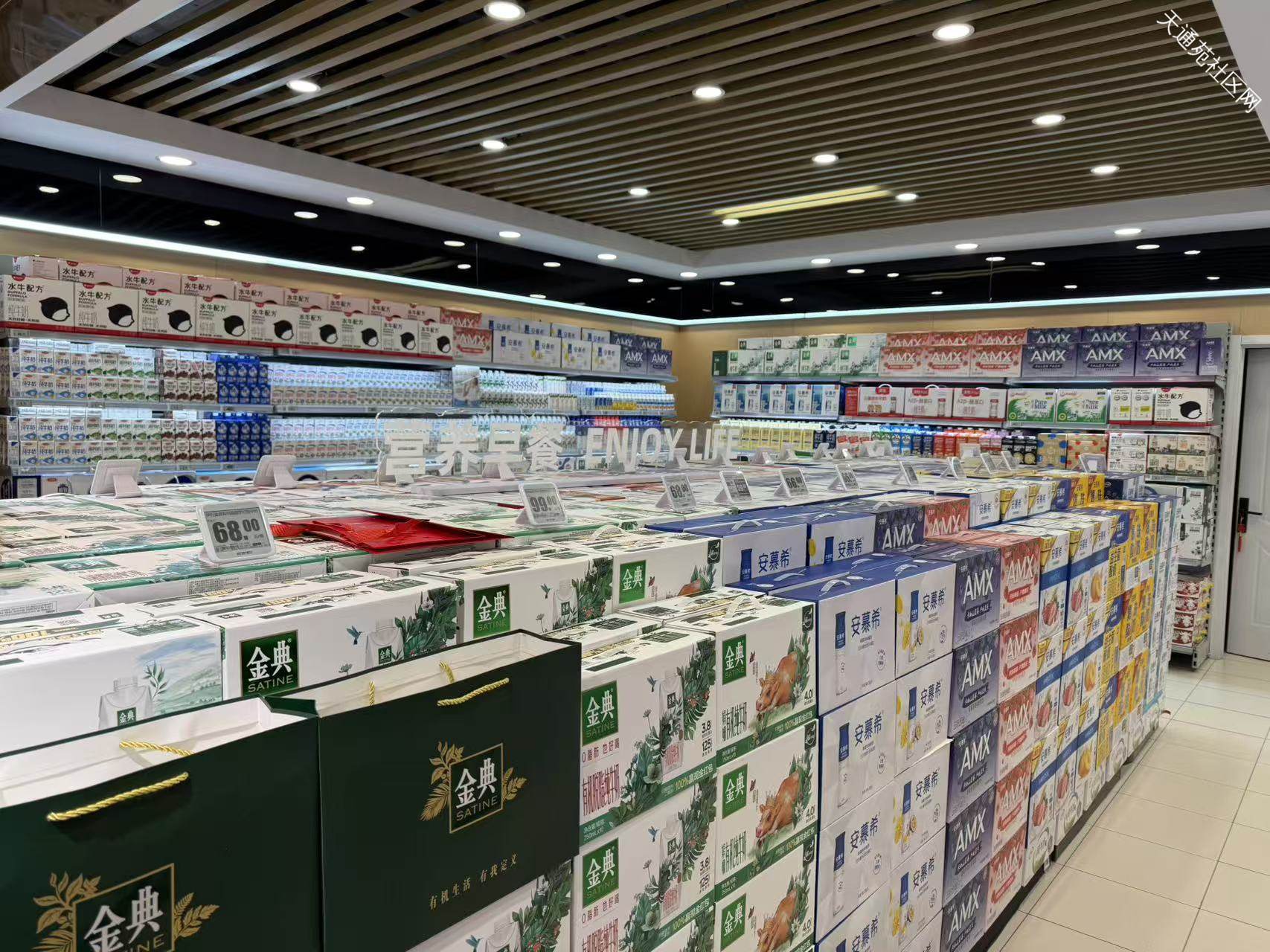 物美去胖东来化,原来胖东来物品的区域全部变成了牛奶区,很少一部分胖东来的物品在收银台
