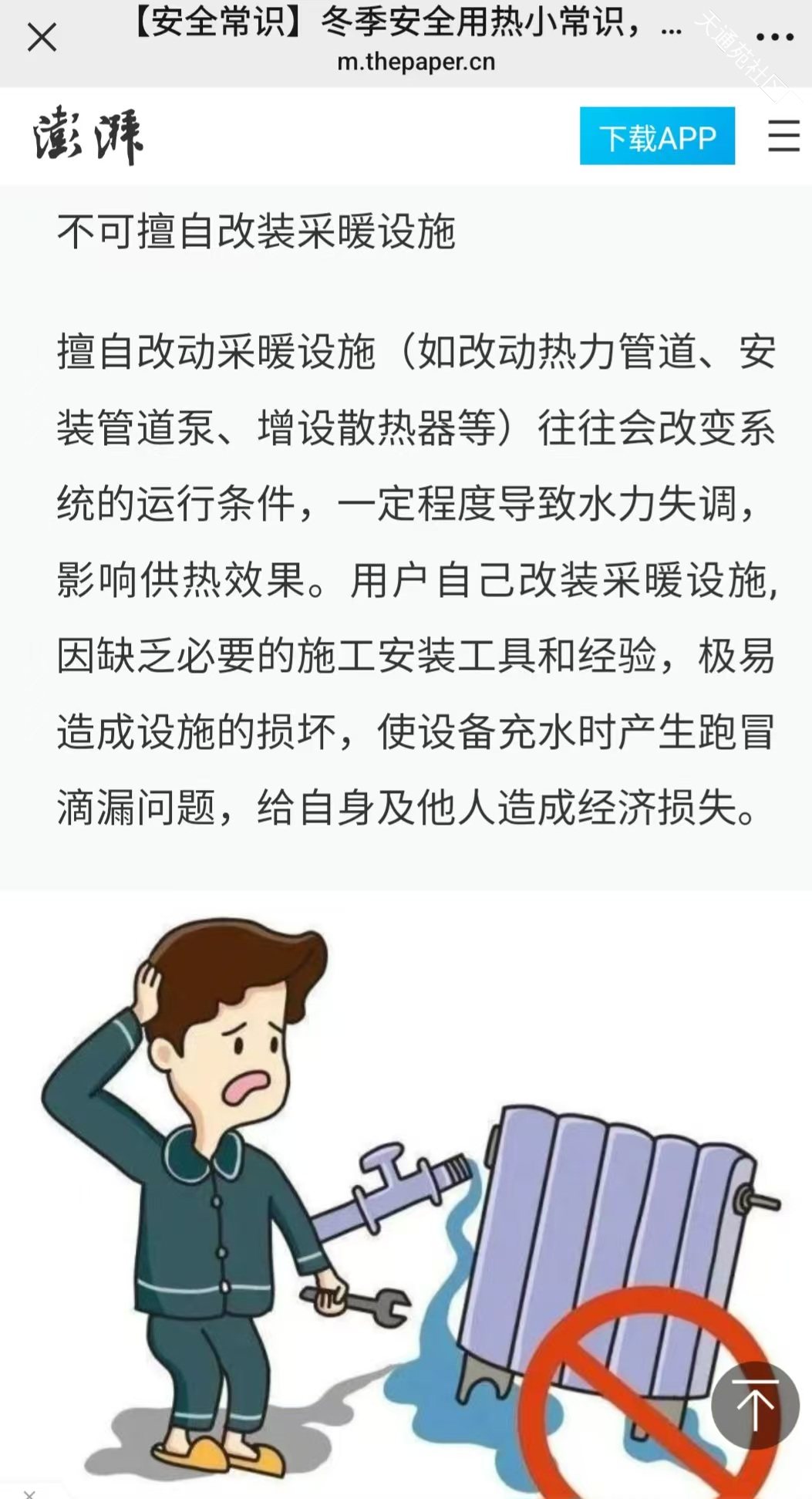 科普:不可擅自改装采暖设施。若擅自改装,将依据《北京市供热采暖管理办法》第三十三条、三十五条处理
