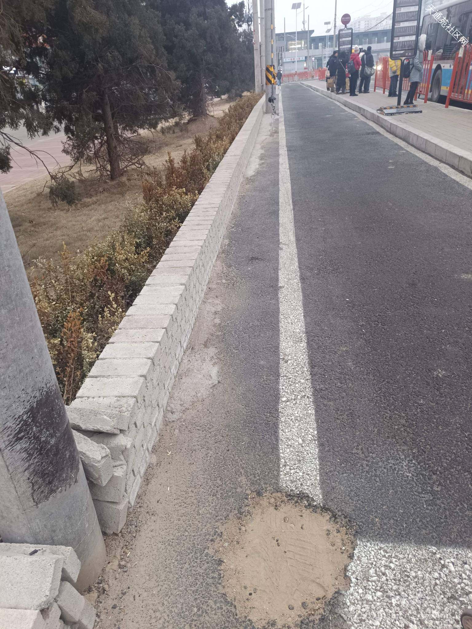 立汤路东侧的地铁天通苑站公交站附近,道路该修补了!