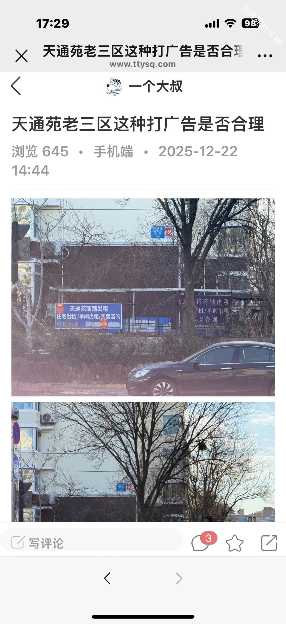 我一个多月前反馈过,给的结果是已经通知广告主一天内下掉广告, 但是一个多月过去了广告还在,严重拉低天通苑市容环境,请有关部门及时处理此事