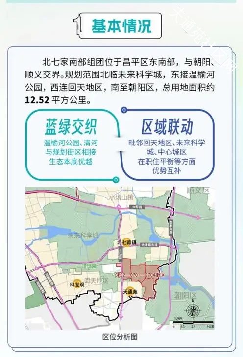 与老城和南邵生态组团遥相呼应,北七家南部组团则聚焦“城绿”+“宜居”,为昌平新城发展增添新活力。该组团位于昌平区东南部,坐拥温榆河、清河两大生态资源,是衔接回天地区与未来科学城的关键枢纽。其规划落地将进一步打通区域发展脉络,推动城乡协同与职住平衡。