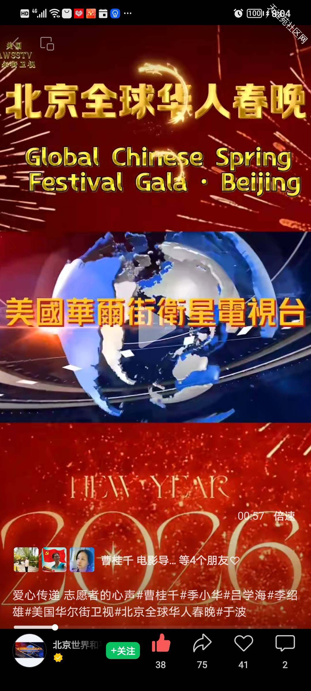 本次联欢会得到了美国华尔街卫星电视台的指导并现场录制了视频,并通过该电视台向全球华人拜年!