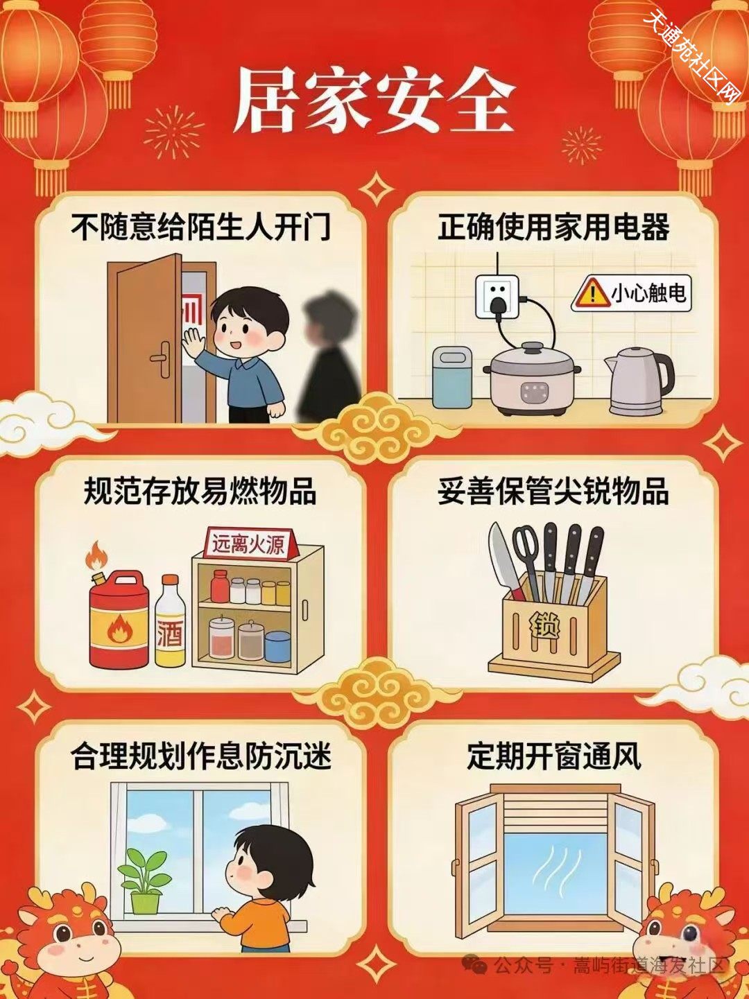 新春佳节即将来临,在阖家团圆、欢乐祥和之际,安全防范绝不能有丝毫松懈。为了让辖区居民度过一个平安、幸福、美满的春节,现送上这份春节安全提示,让我们携手筑牢安全防线!