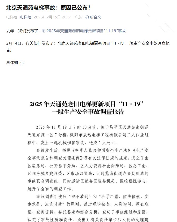 看了下原因,主要就是工人违规作业,电梯方层层转包,各方面都有问题,内容很长,链接放下面了,感兴趣的自己看