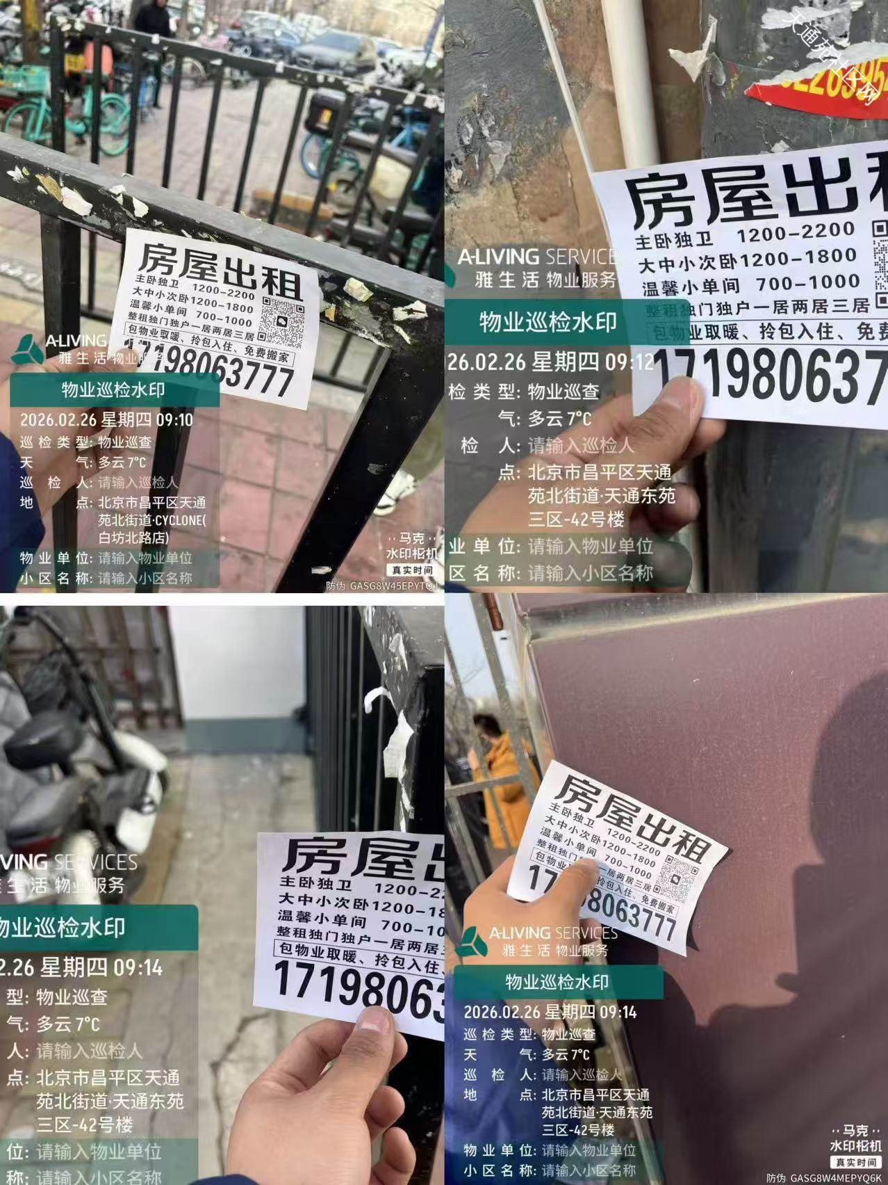 为进一步改善社区整体环境,提升社区居民幸福指数,营造优美整洁、干净亮丽的市容市貌,天通苑东区秩序维护队每天组织人员巡视、清理辖区各类小广告。呼吁居民共同抵制不文明行为,携手营造整洁优美、安全宜居的社区环境。