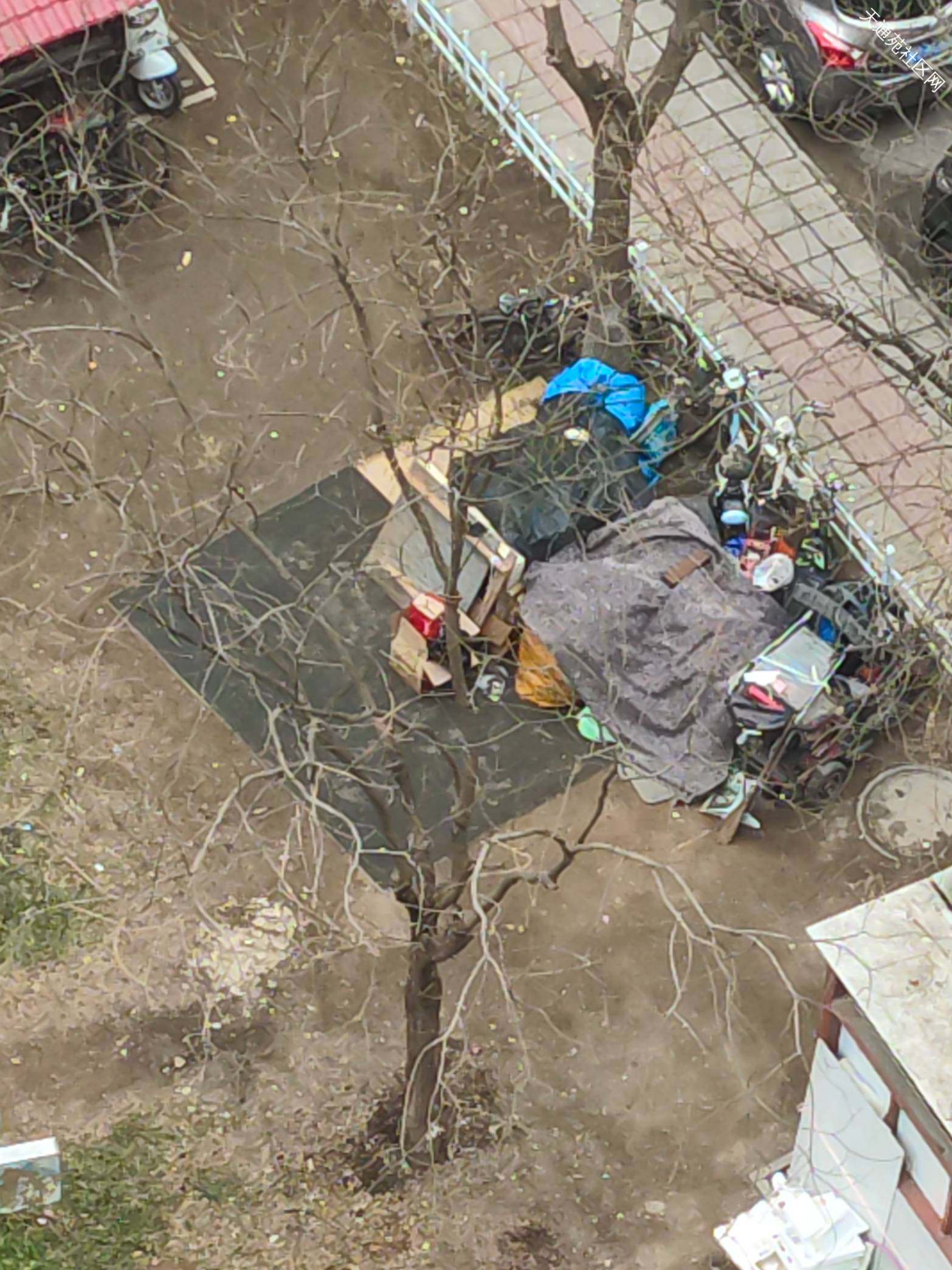 北一区17号楼南侧绿地被堆垃圾杂物的长期占用,而且这么多杂物挨着充电桩,有很大安全隐患!