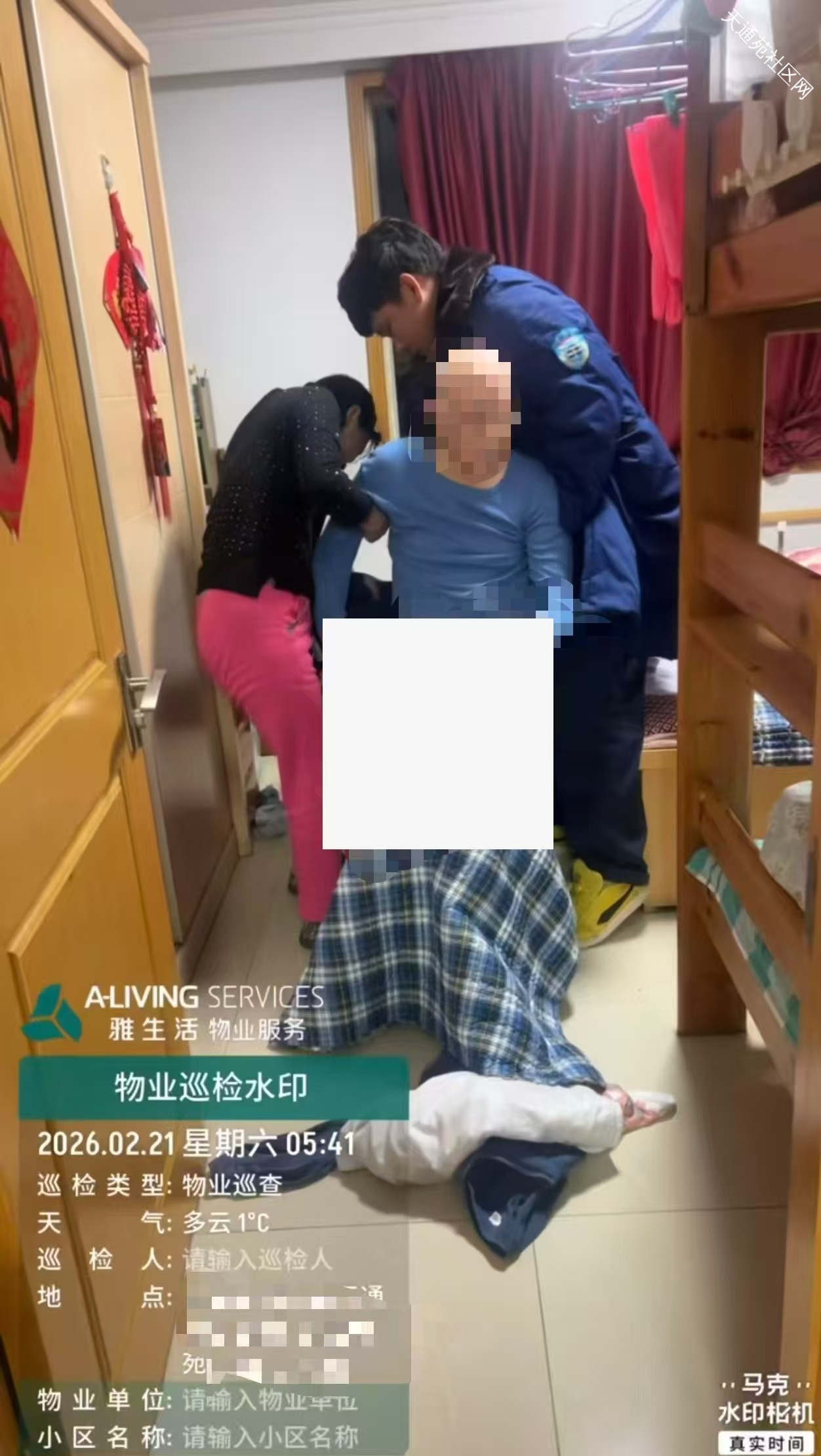 2026年2月21日凌晨5时41分,东区秩序维护队接到东三区业主来电求助,说老人不小心摔倒,家中人手不够,需要人员帮抬一下。接到求助后,值班人员迅速调配小区巡逻人员,前去家中提供帮助。