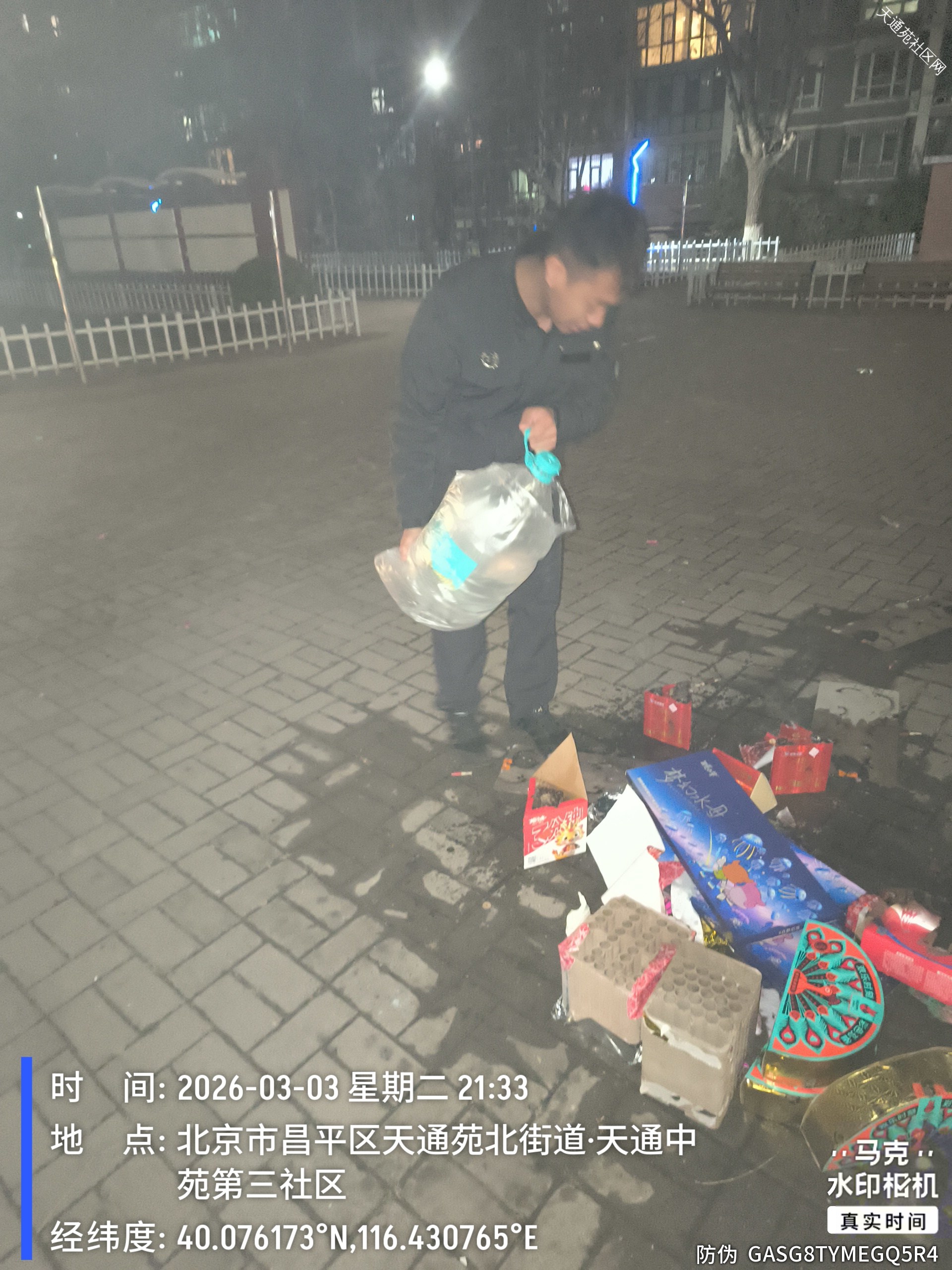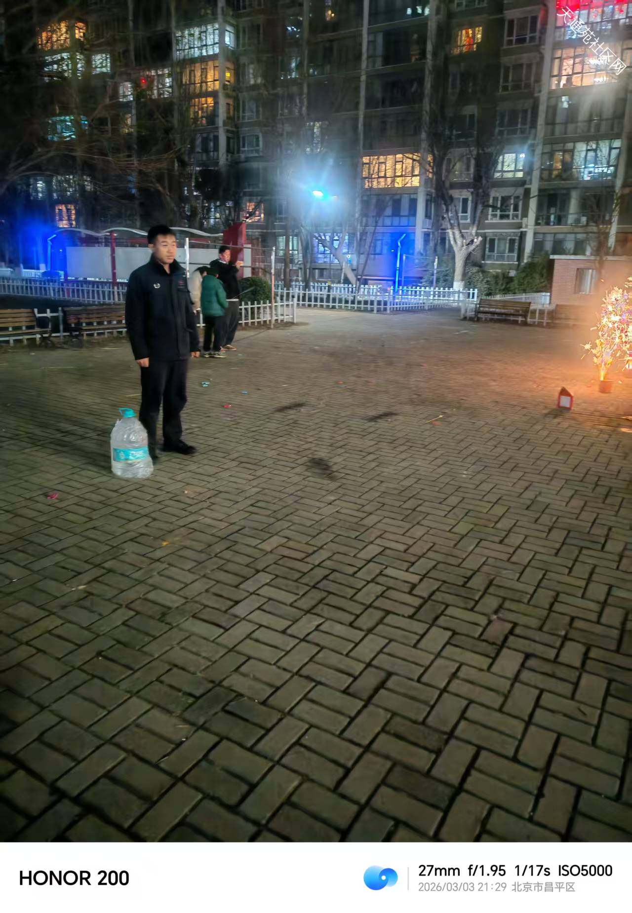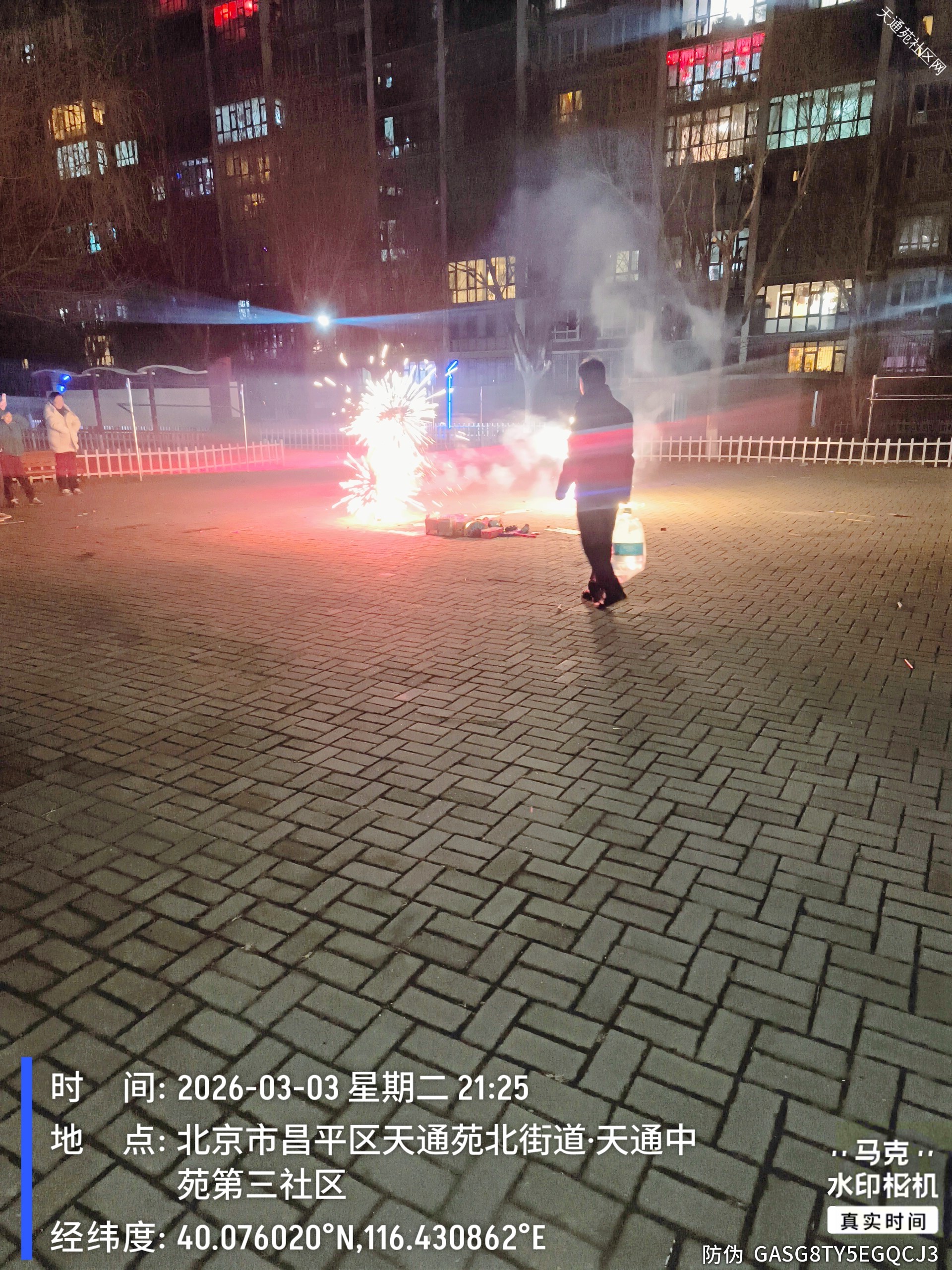 正月十五元宵佳节,小区广场上部分居民带上小型烟花共庆佳节。给社区安全带来不小压力。为守护小区平安,天通中苑方佳物业秩序维护队全员在岗在位,分组、分区域坚守护航平安,用温情守护团圆,成为节日里最安心的风景线。