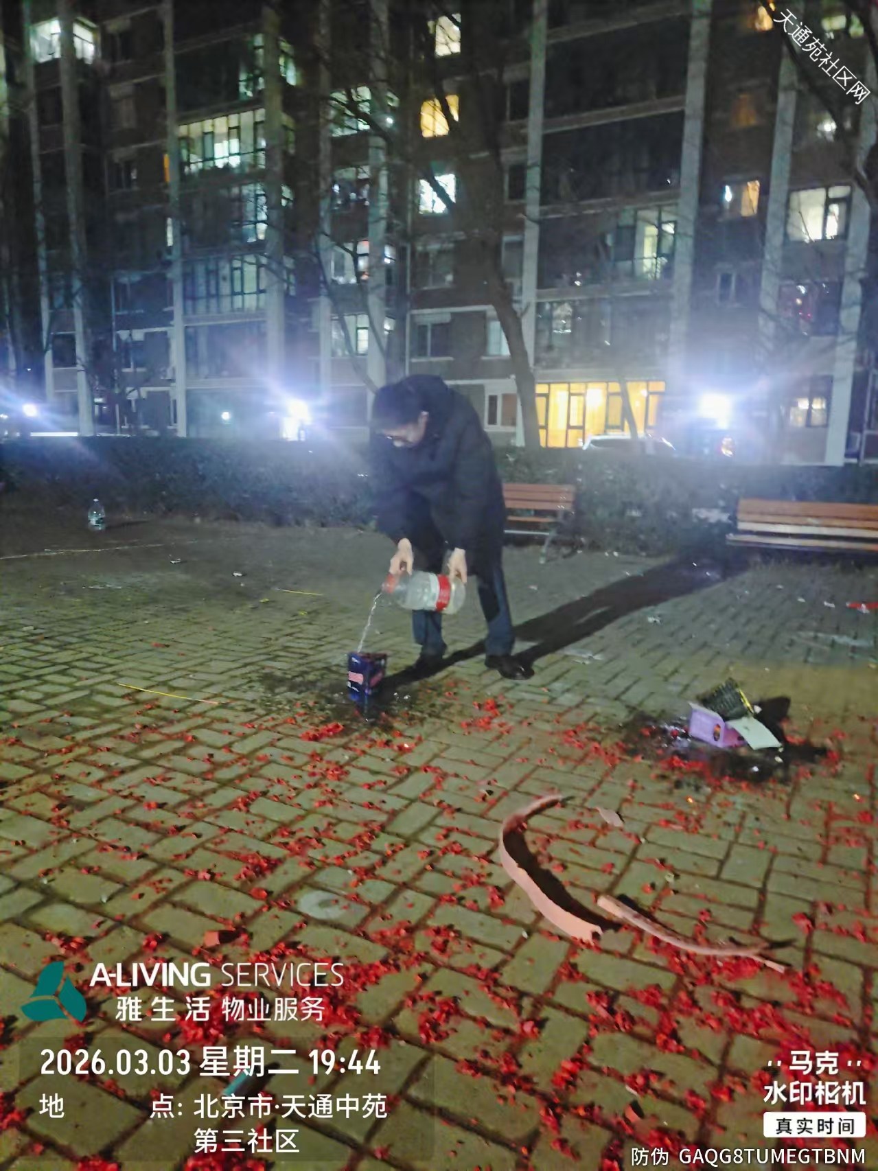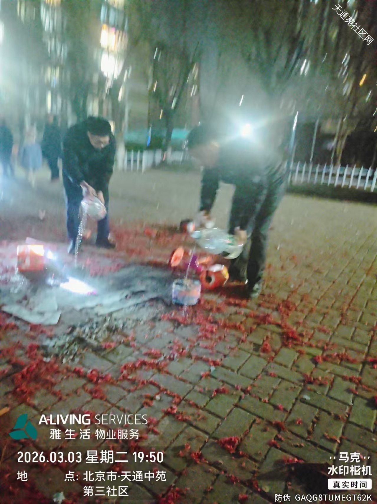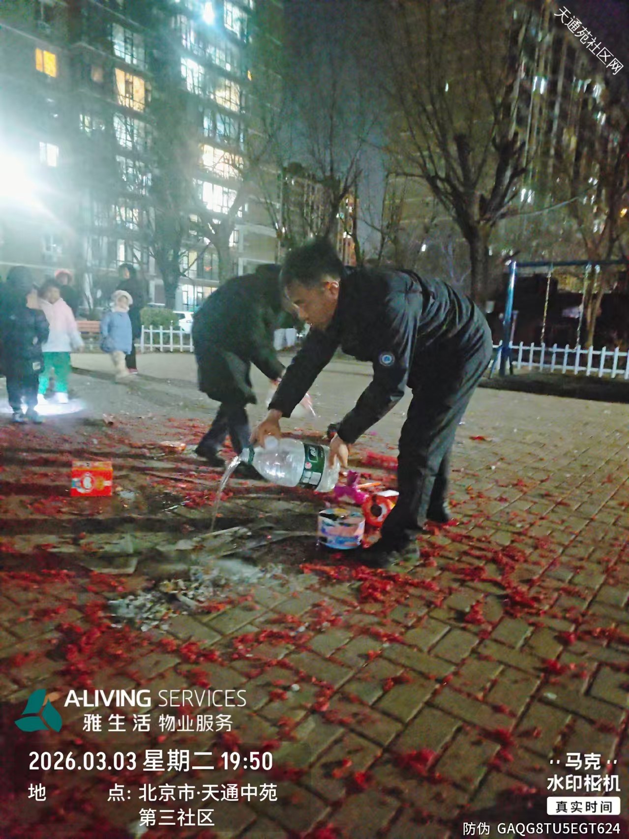 正月十五元宵佳节,小区广场上部分居民带上小型烟花共庆佳节。给社区安全带来不小压力。为守护小区平安,天通中苑方佳物业秩序维护队全员在岗在位,分组、分区域坚守护航平安,用温情守护团圆,成为节日里最安心的风景线。